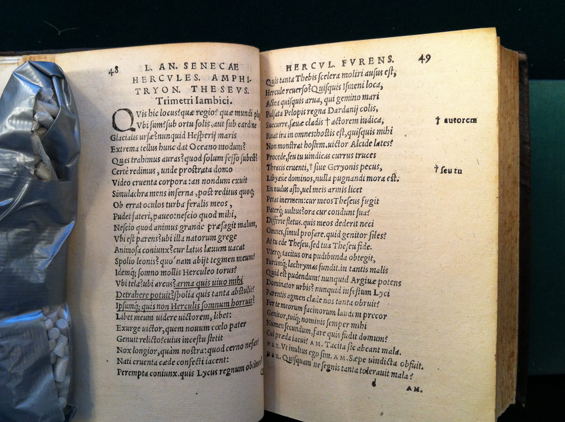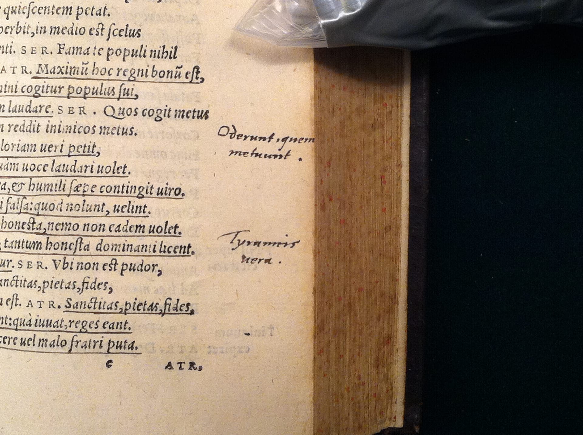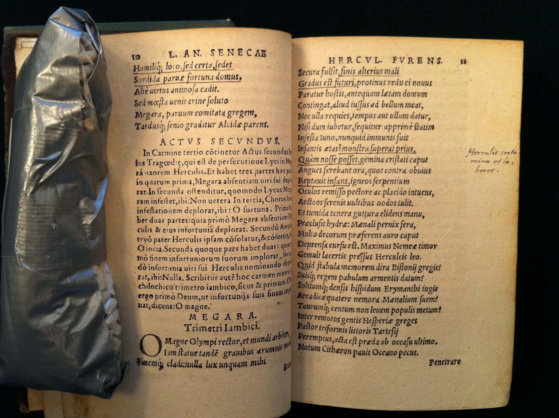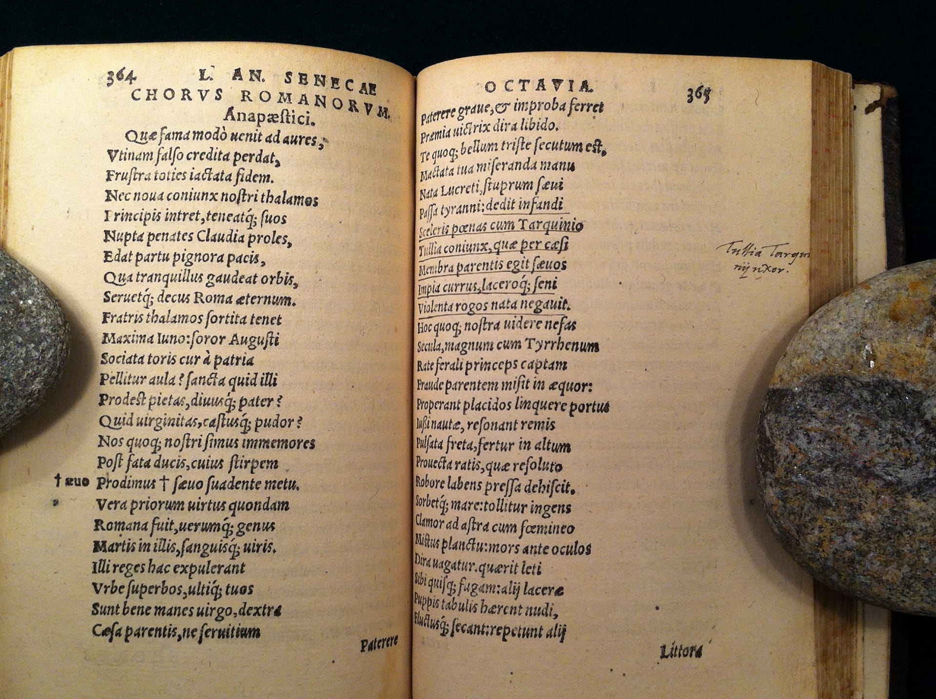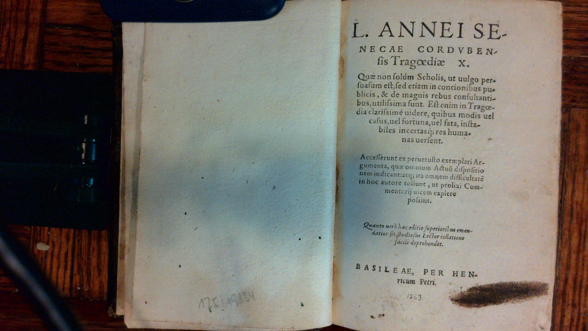 Provenance and Current Location: Provenance unknown. Purchased by an American collector in around 2015 and now in the Senate House Library’s Shakespeare Authorship Collection. The book is the 1563 edition of Seneca’s Ten Tragedies printed at Basil.