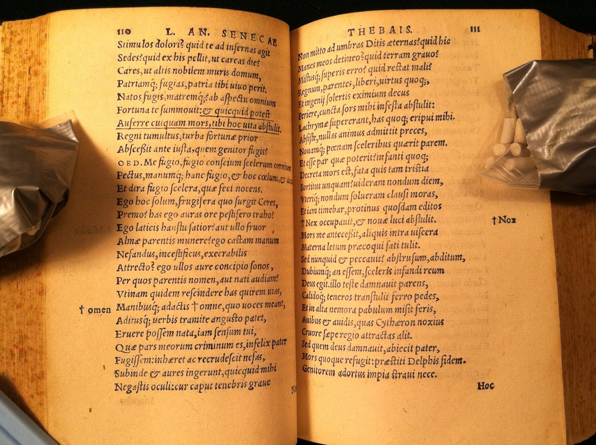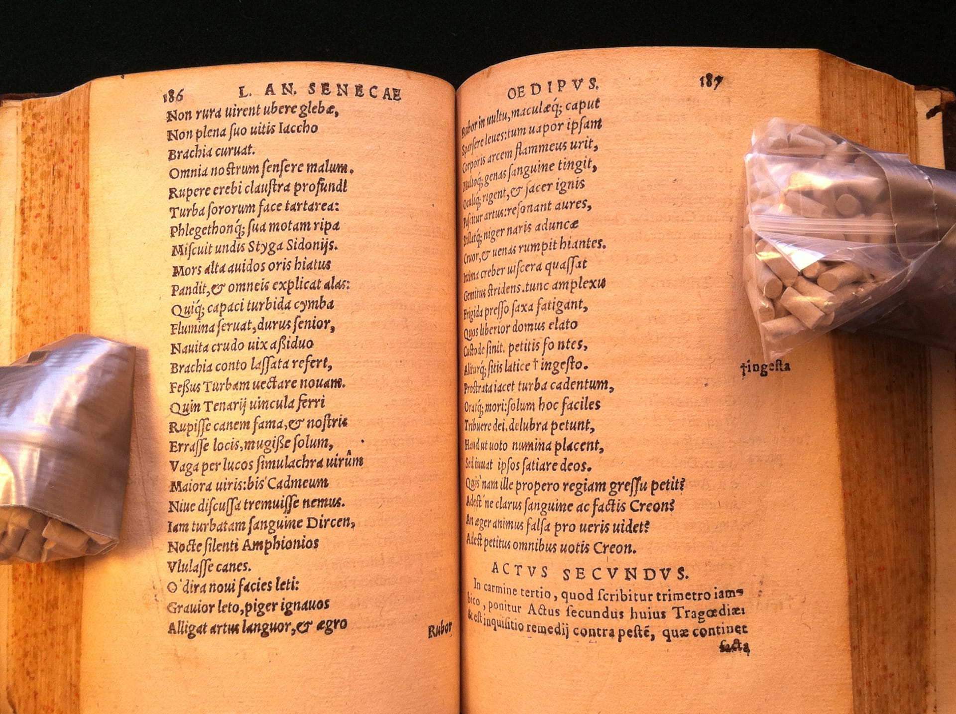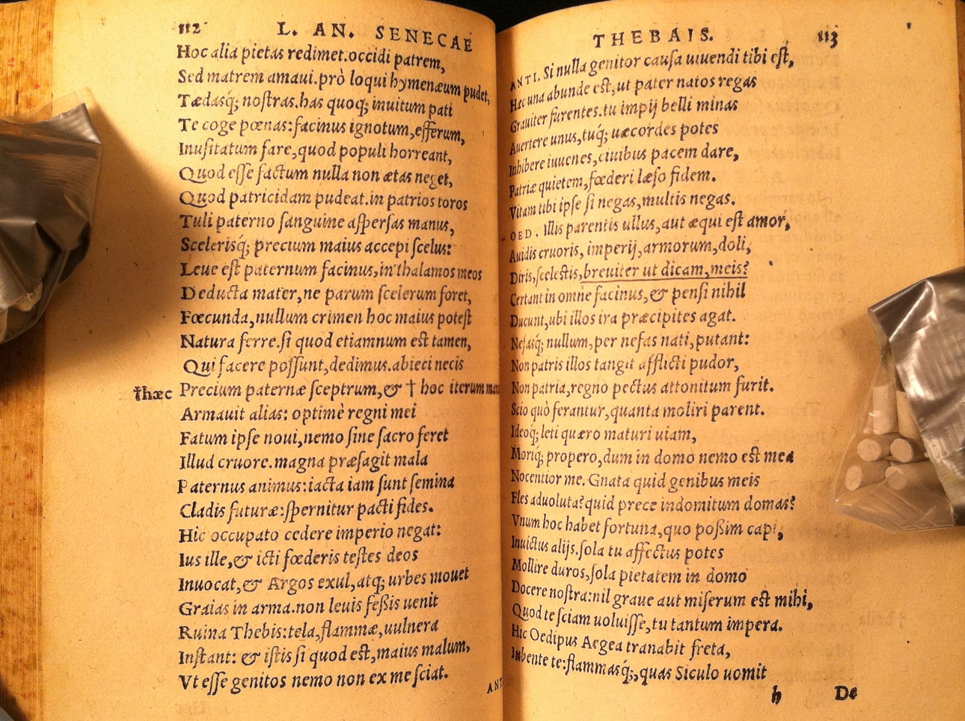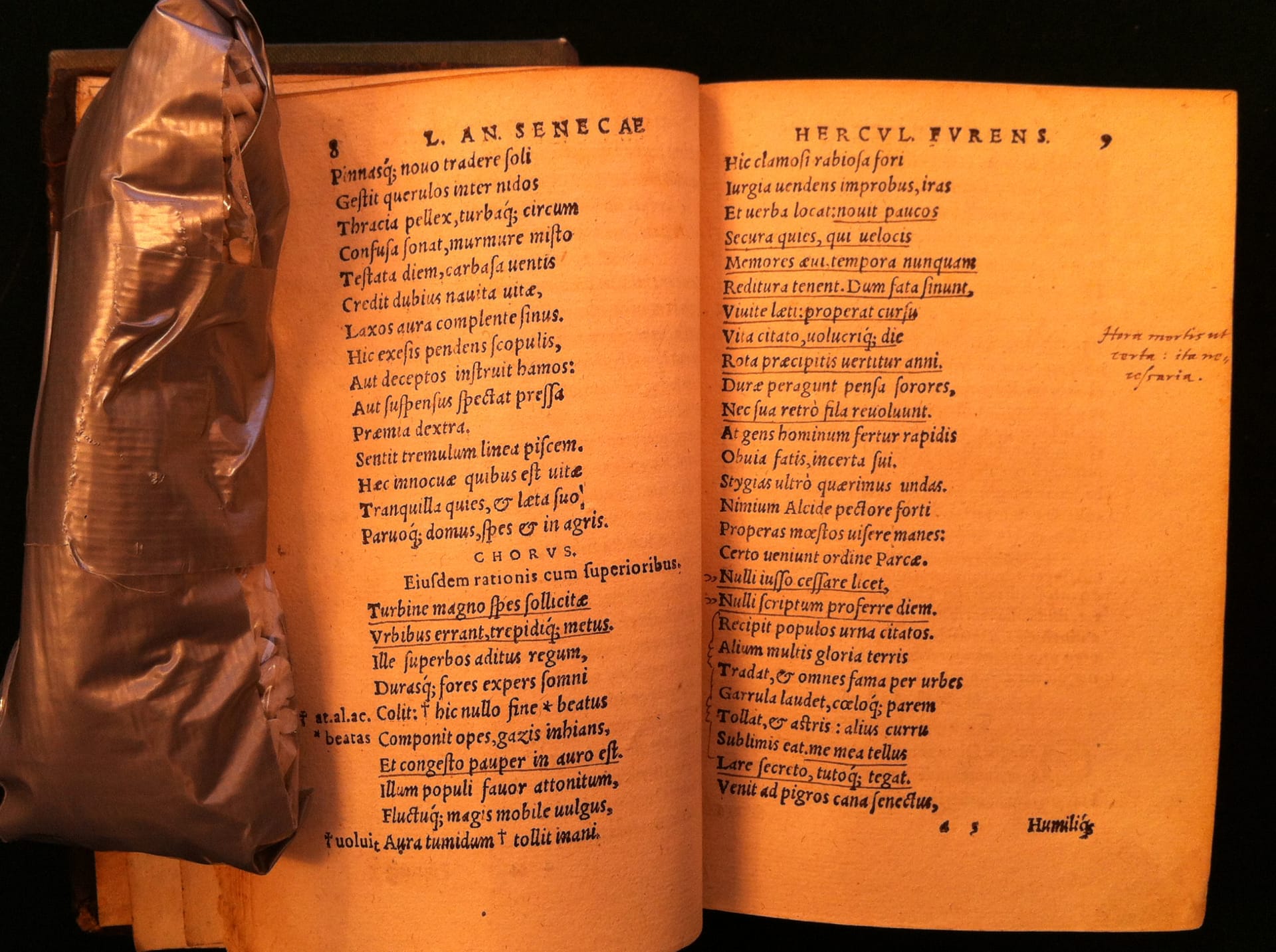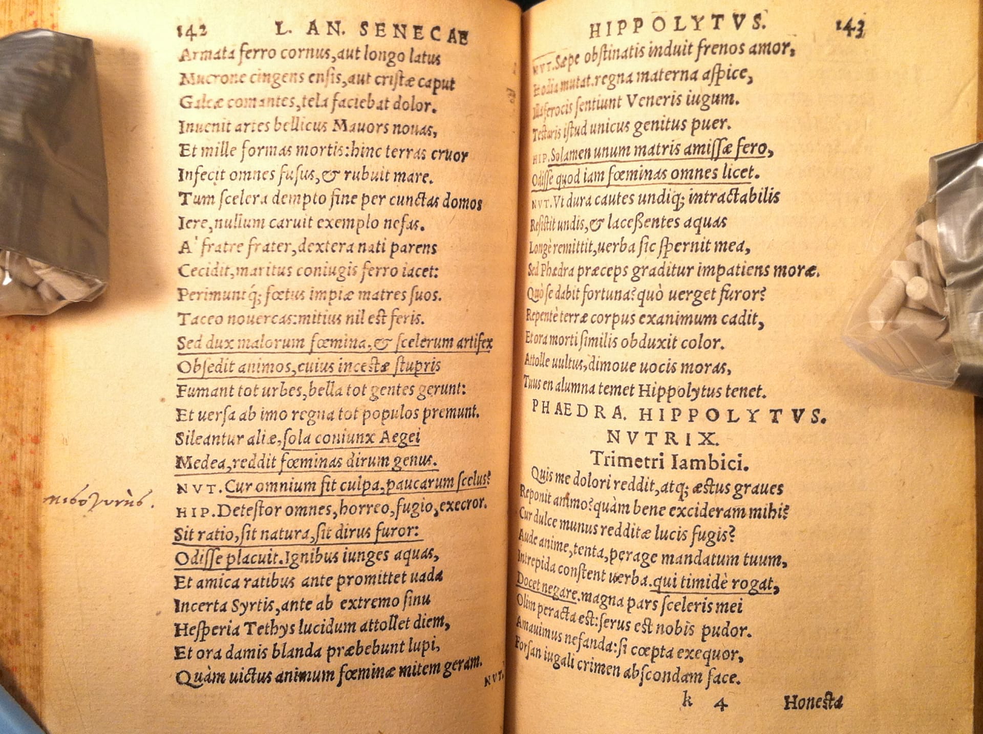 Provenance and Current Location: Provenance unknown. Purchased by an American collector in around 2015 and now in the Senate House Library’s Shakespeare Authorship Collection. The book is the 1563 edition of Seneca’s Ten Tragedies printed at Basil.