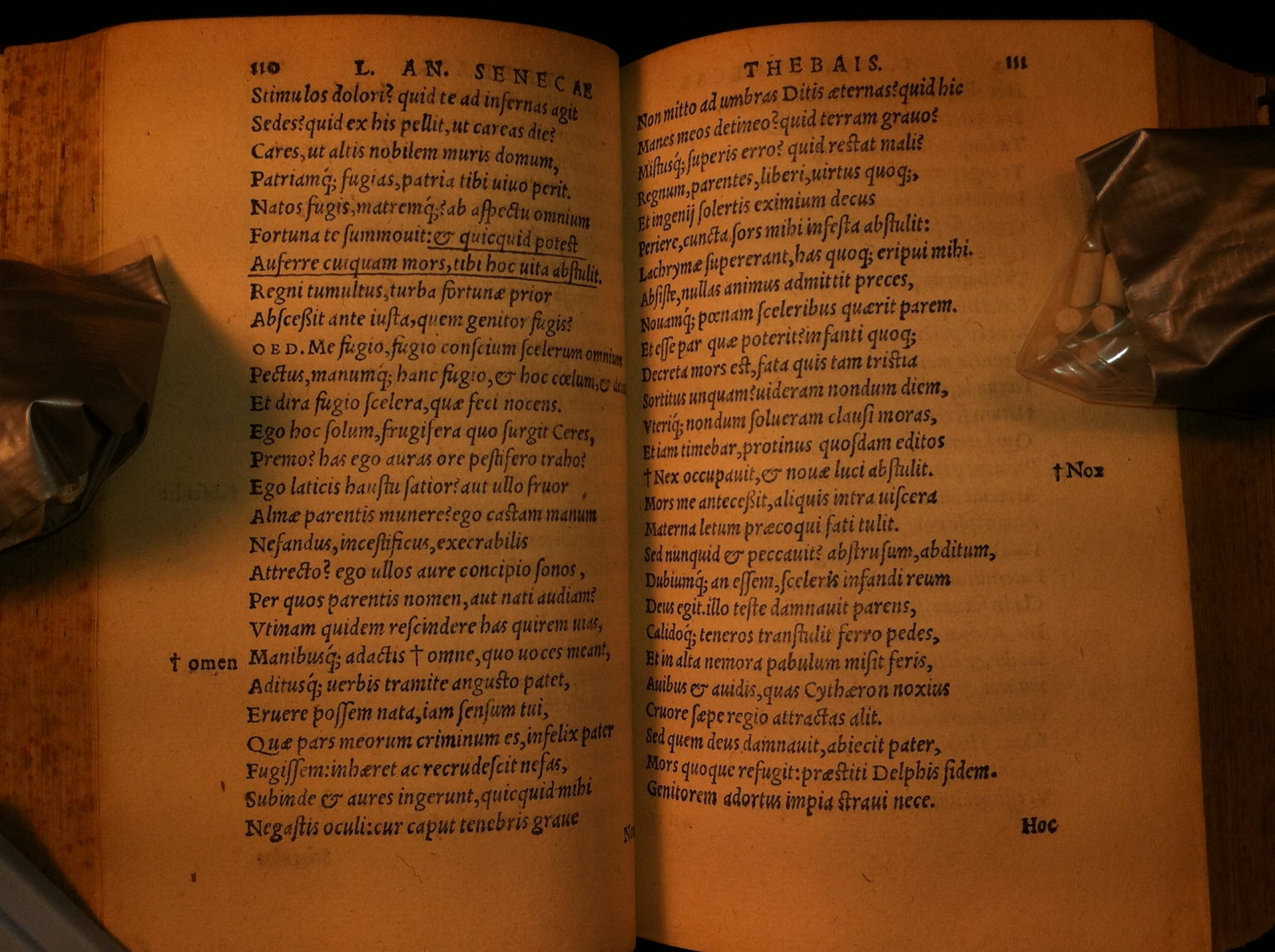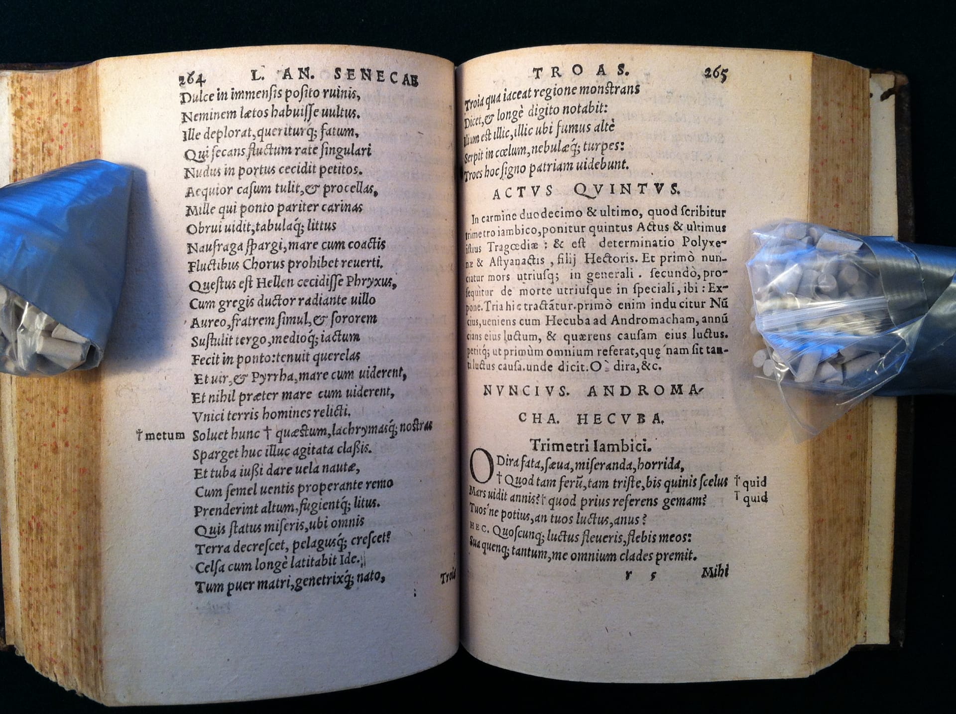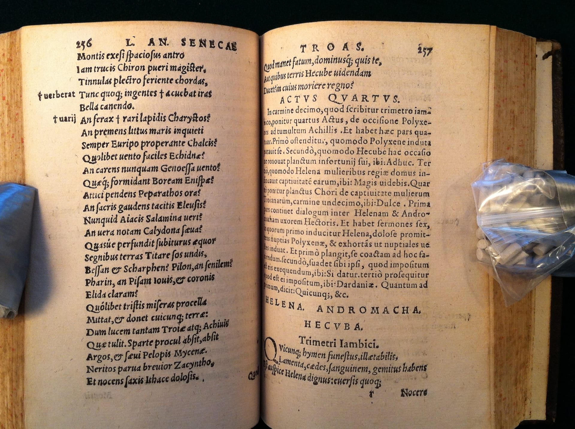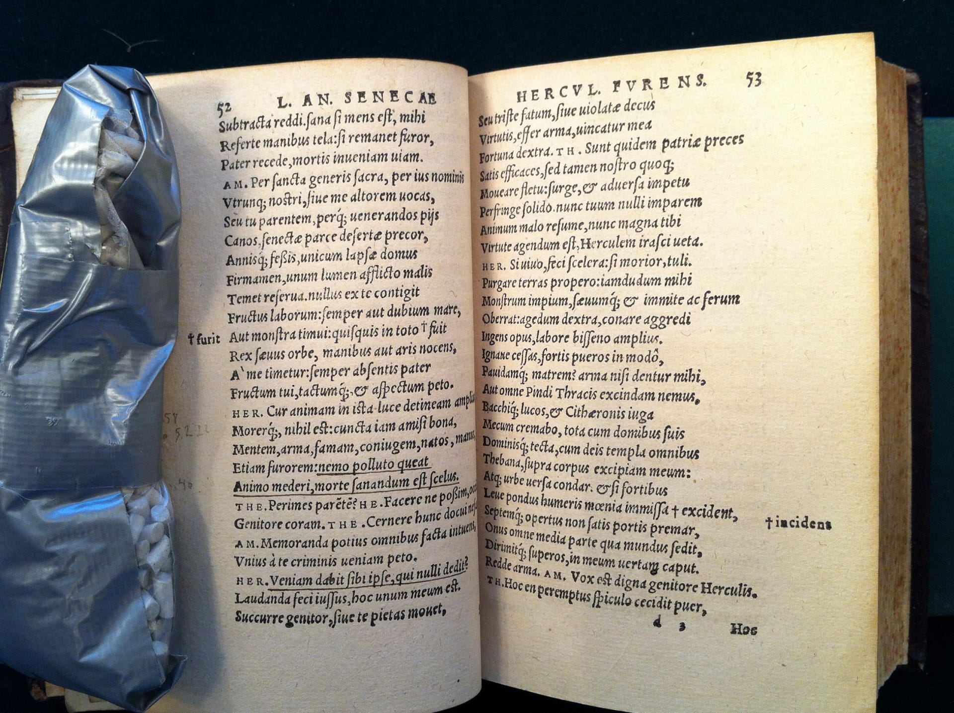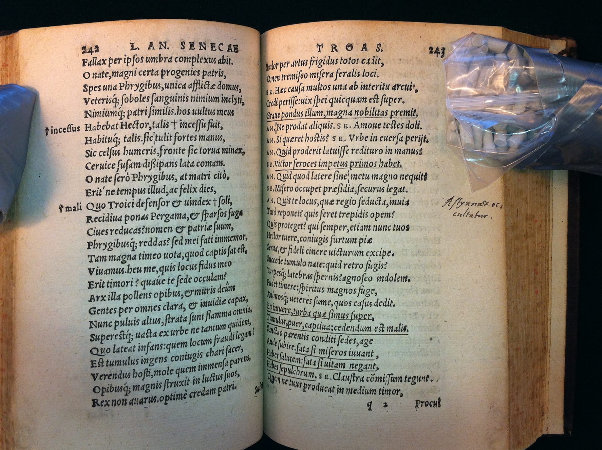 Provenance and Current Location: Provenance unknown. Purchased by an American collector in around 2015 and now in the Senate House Library’s Shakespeare Authorship Collection. The book is the 1563 edition of Seneca’s Ten Tragedies printed at Basil.