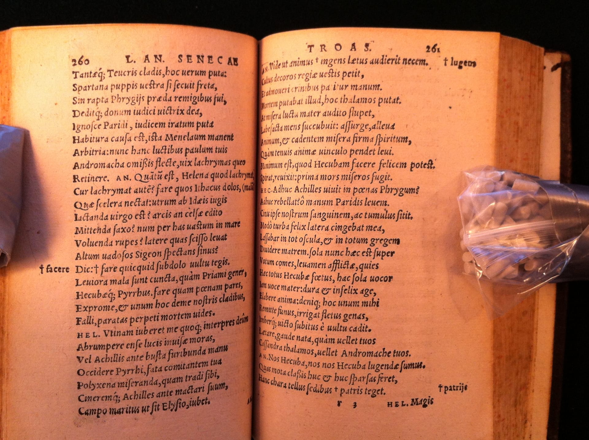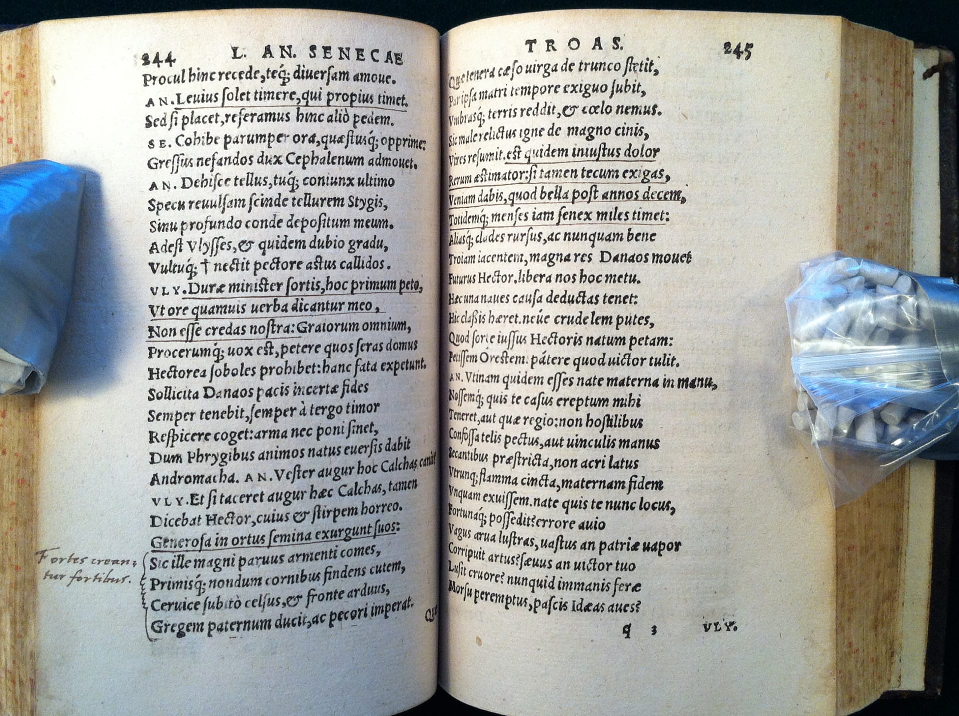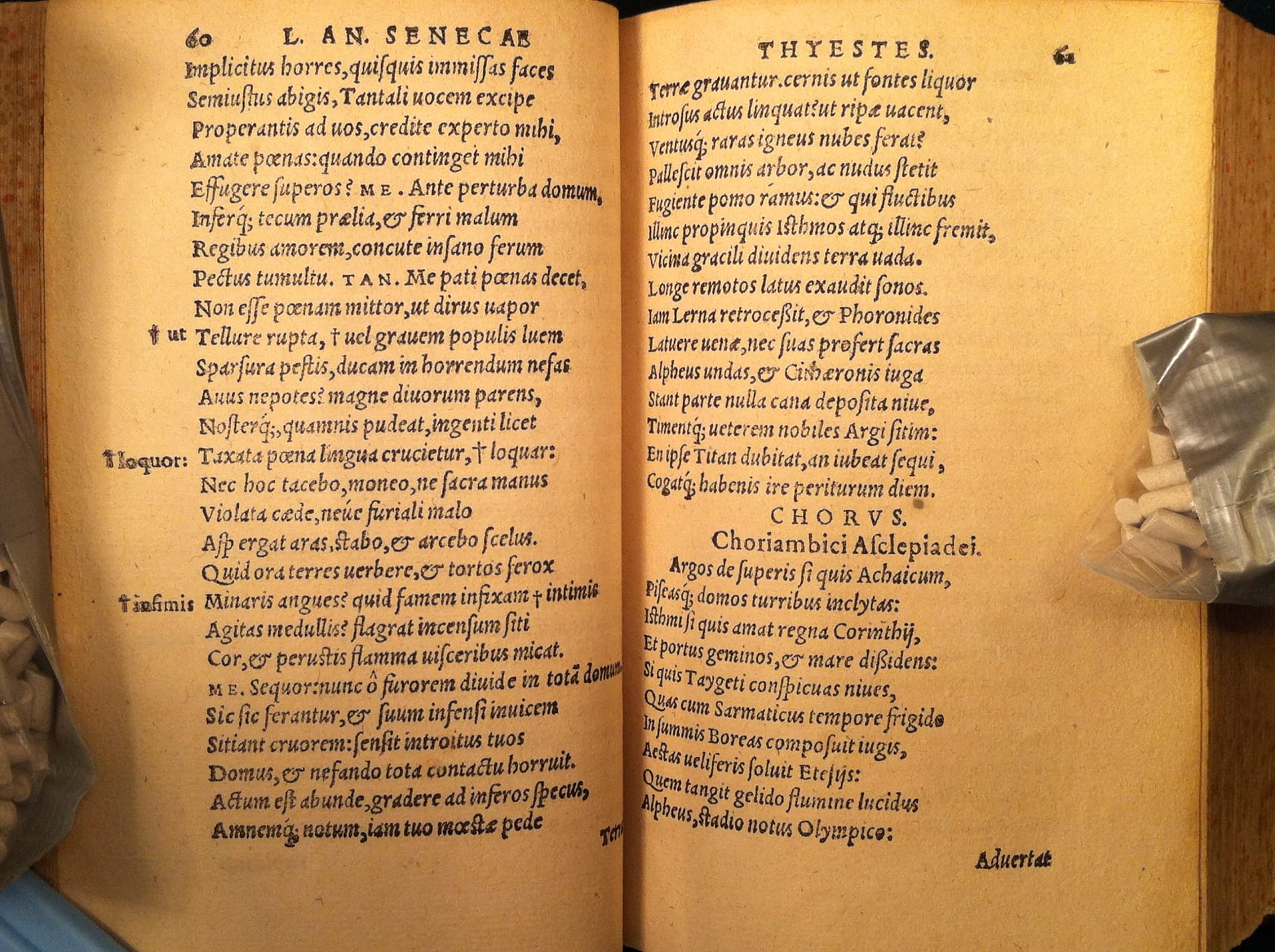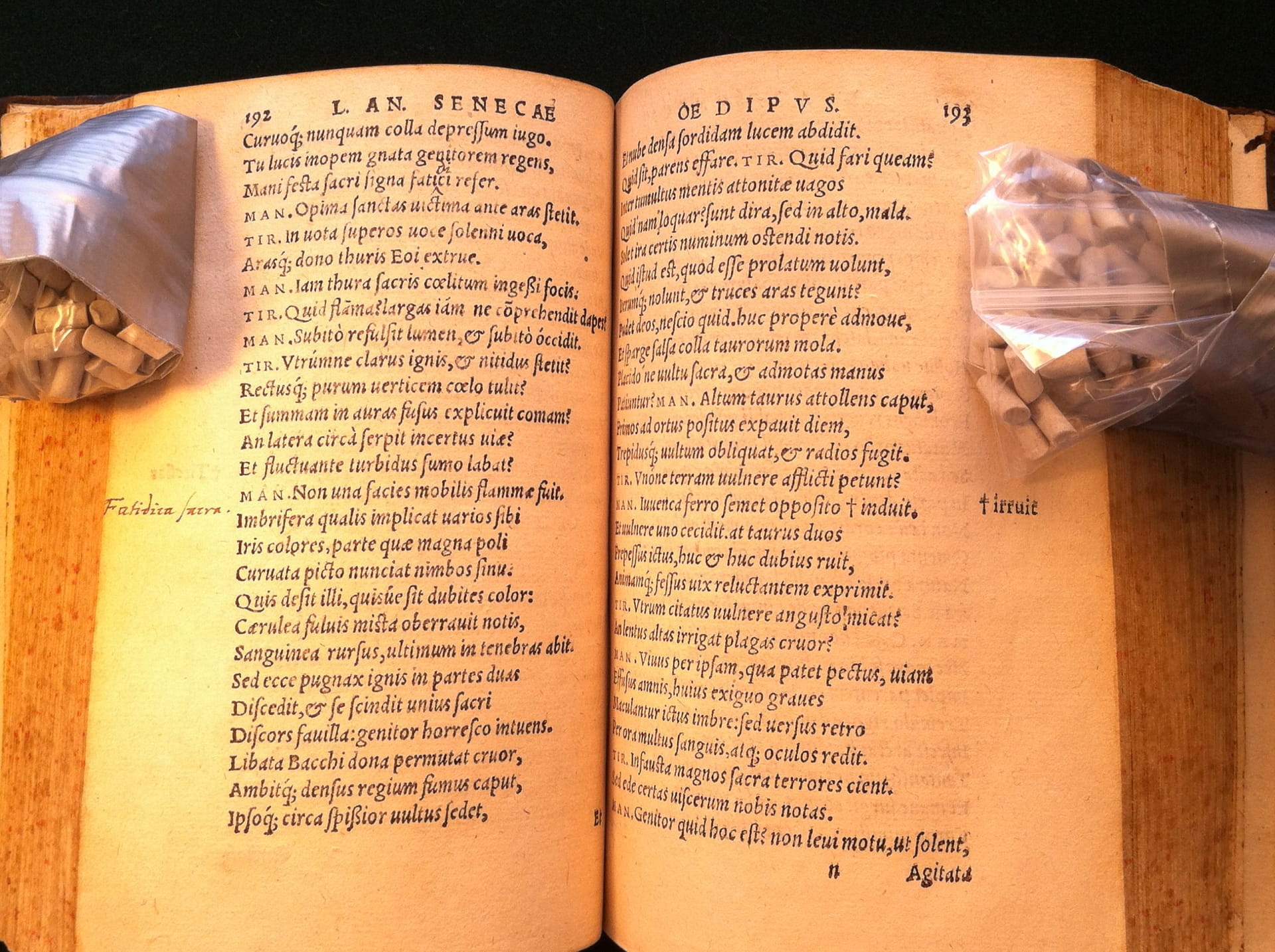Provenance and Current Location: Provenance unknown. Purchased by an American collector in around 2015 and now in the Senate House Library’s Shakespeare Authorship Collection. The book is the 1563 edition of Seneca’s Ten Tragedies printed at Basil.
