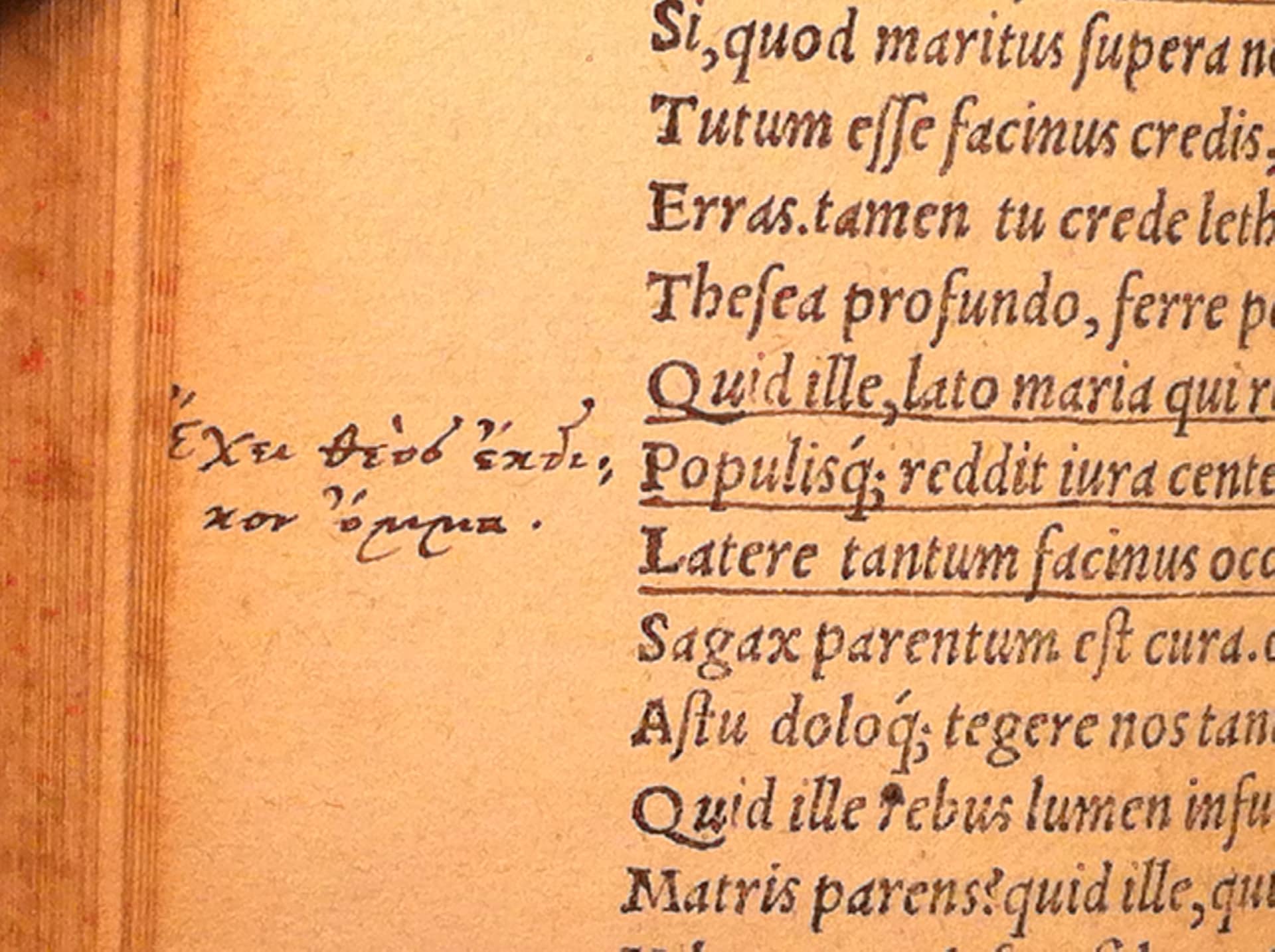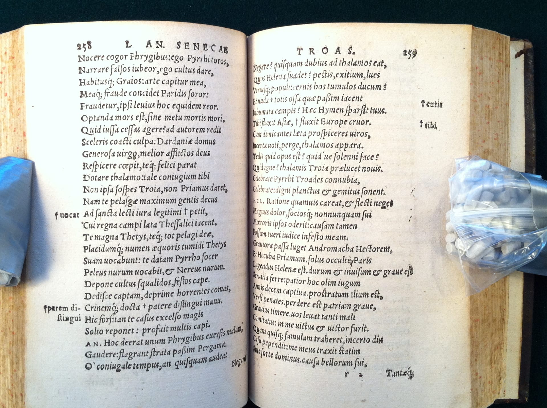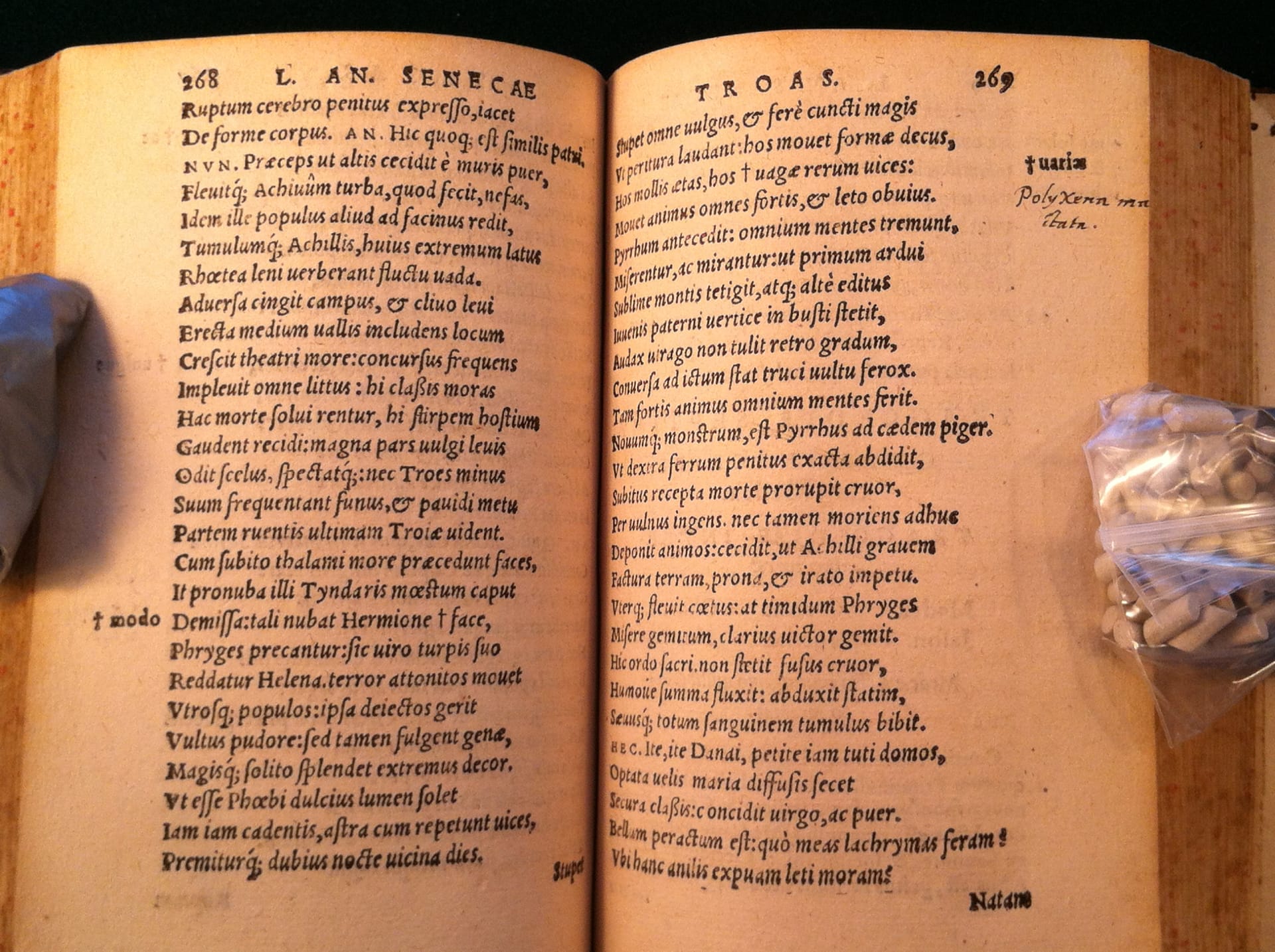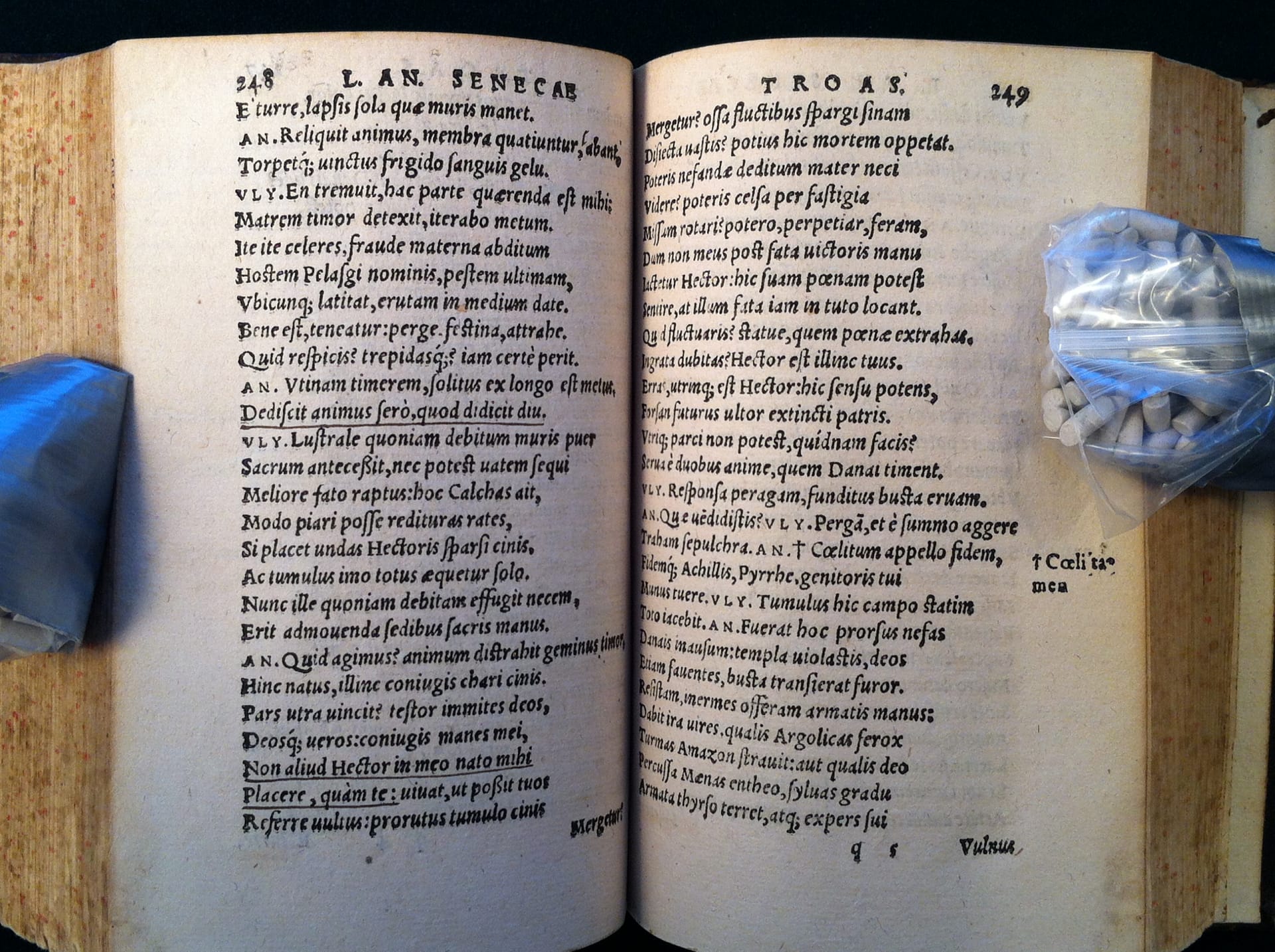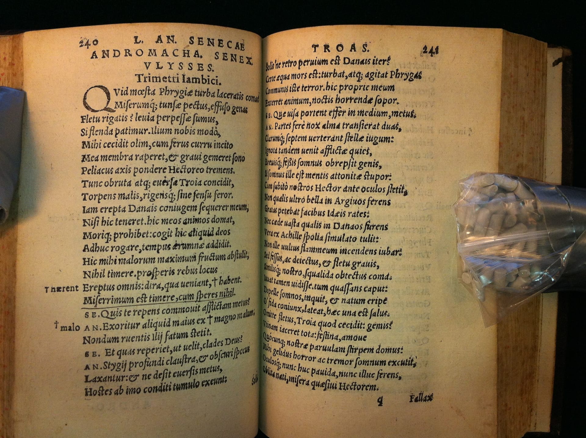 Provenance and Current Location: Provenance unknown. Purchased by an American collector in around 2015 and now in the Senate House Library’s Shakespeare Authorship Collection. The book is the 1563 edition of Seneca’s Ten Tragedies printed at Basil.