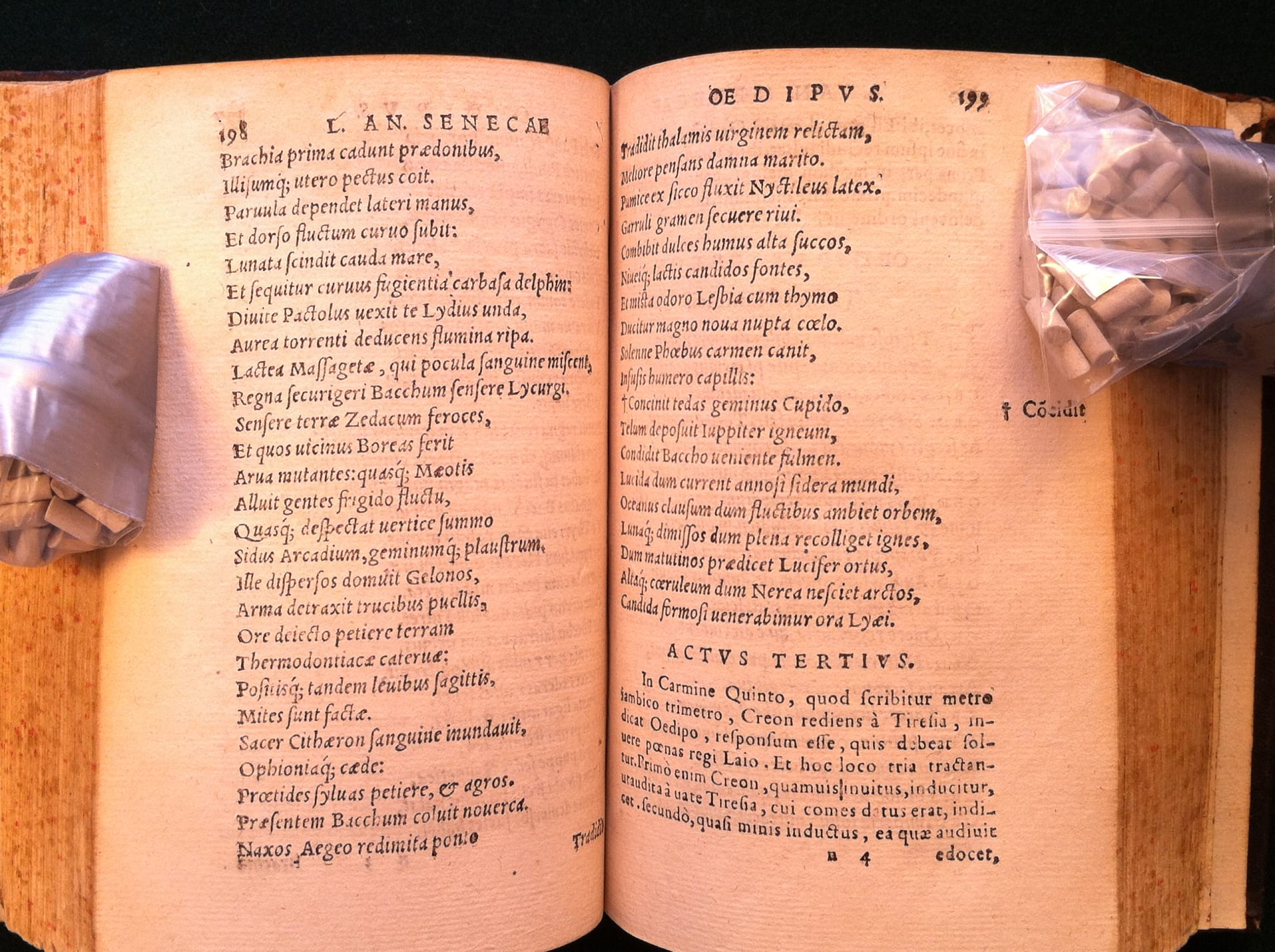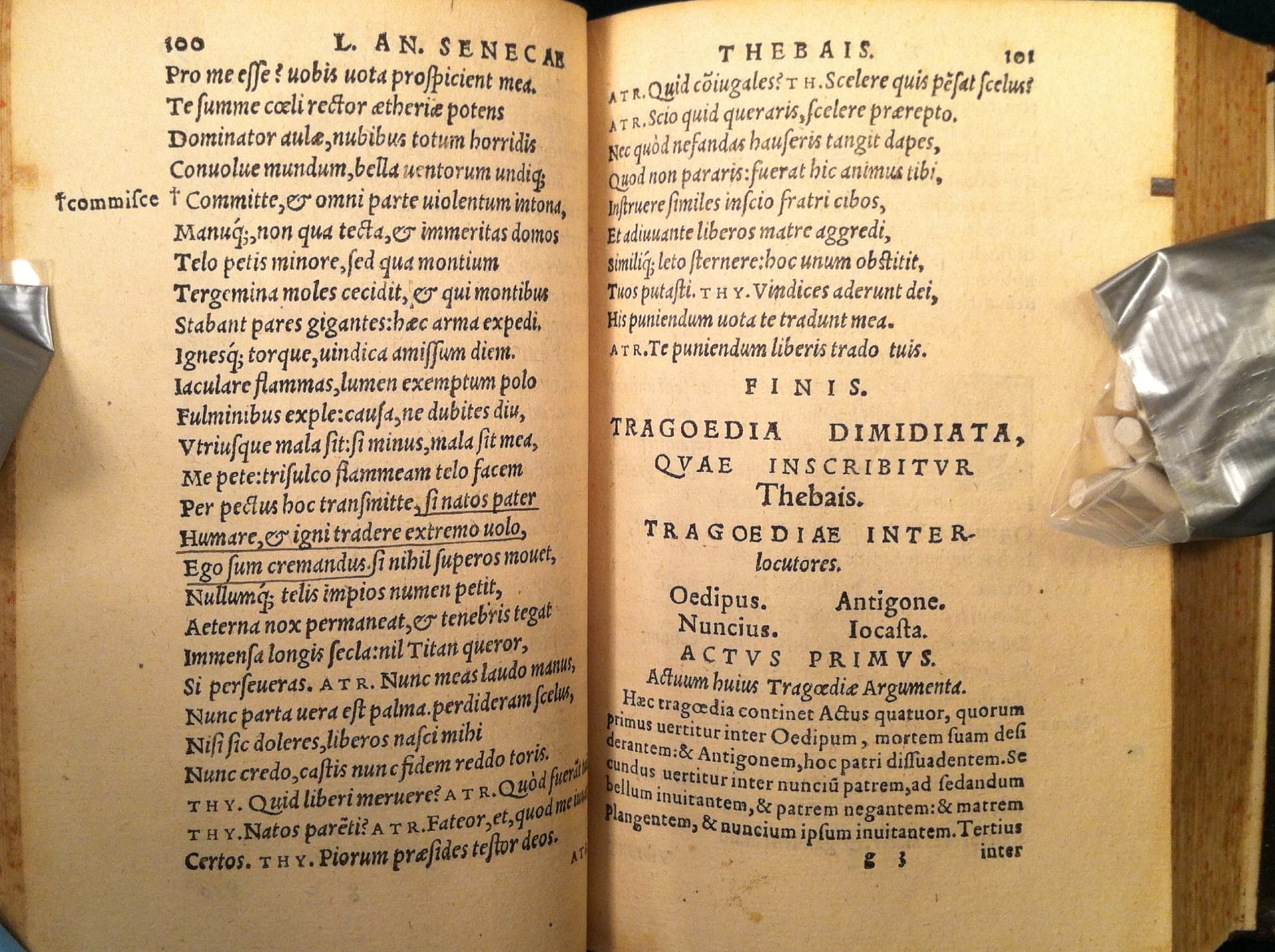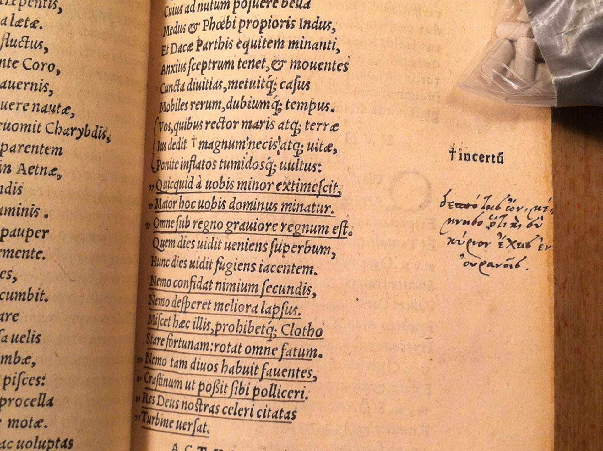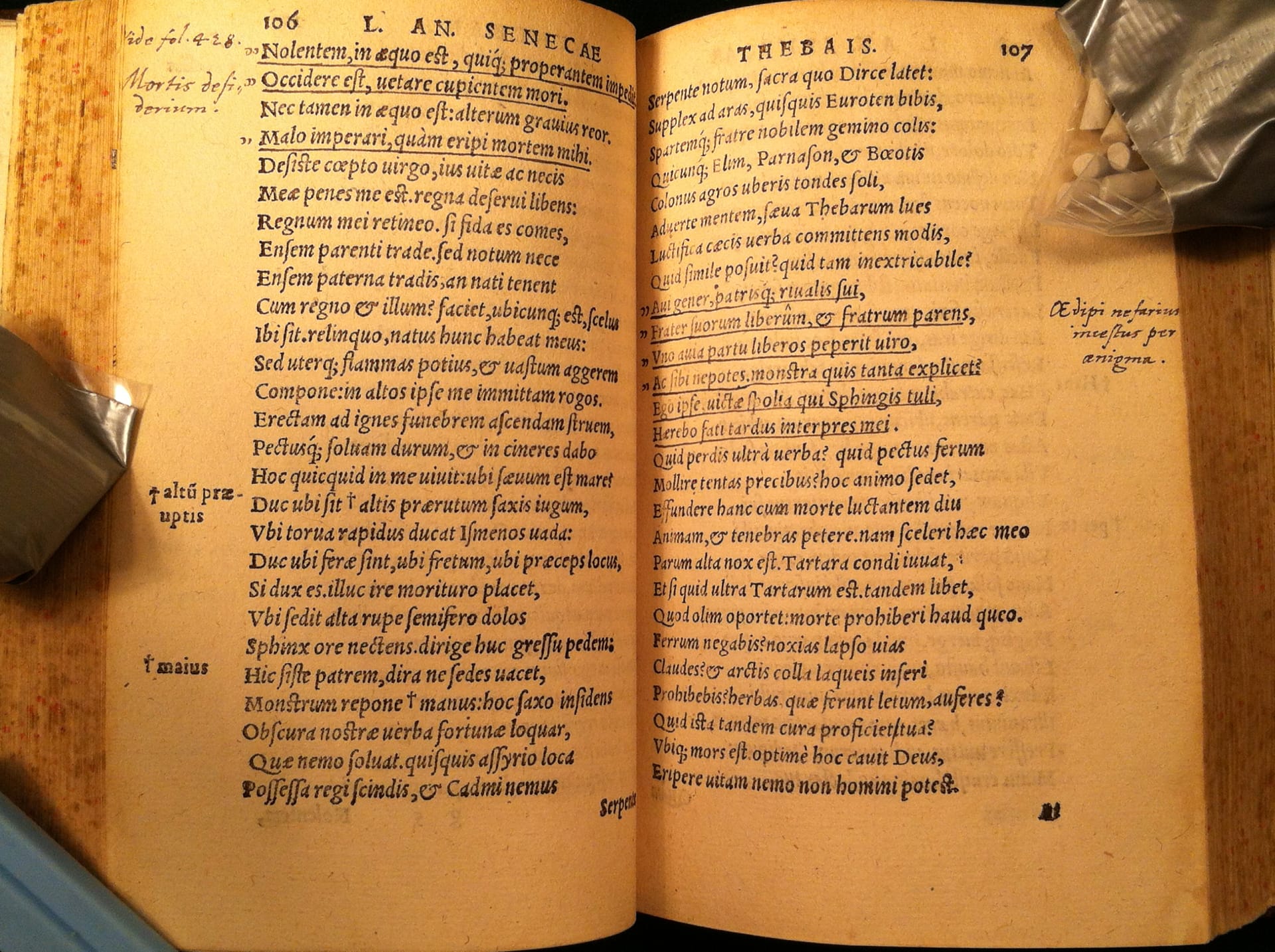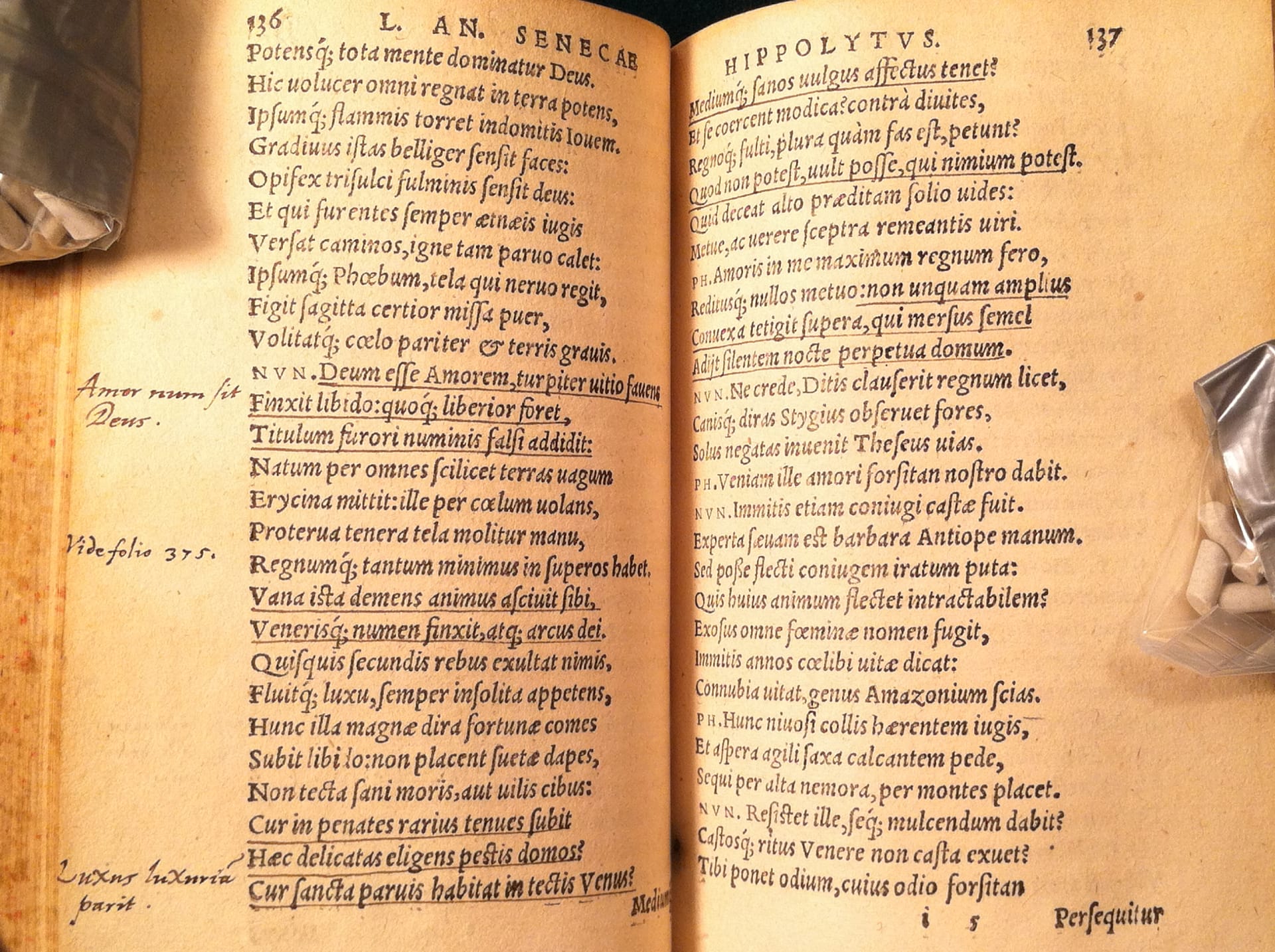 Provenance and Current Location: Provenance unknown. Purchased by an American collector in around 2015 and now in the Senate House Library’s Shakespeare Authorship Collection. The book is the 1563 edition of Seneca’s Ten Tragedies printed at Basil.