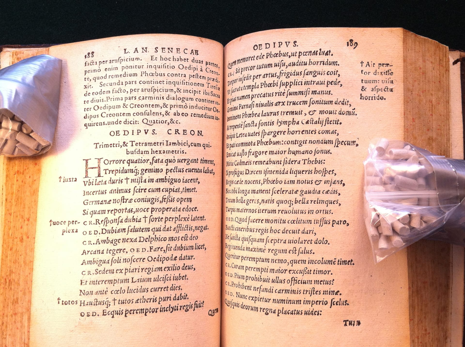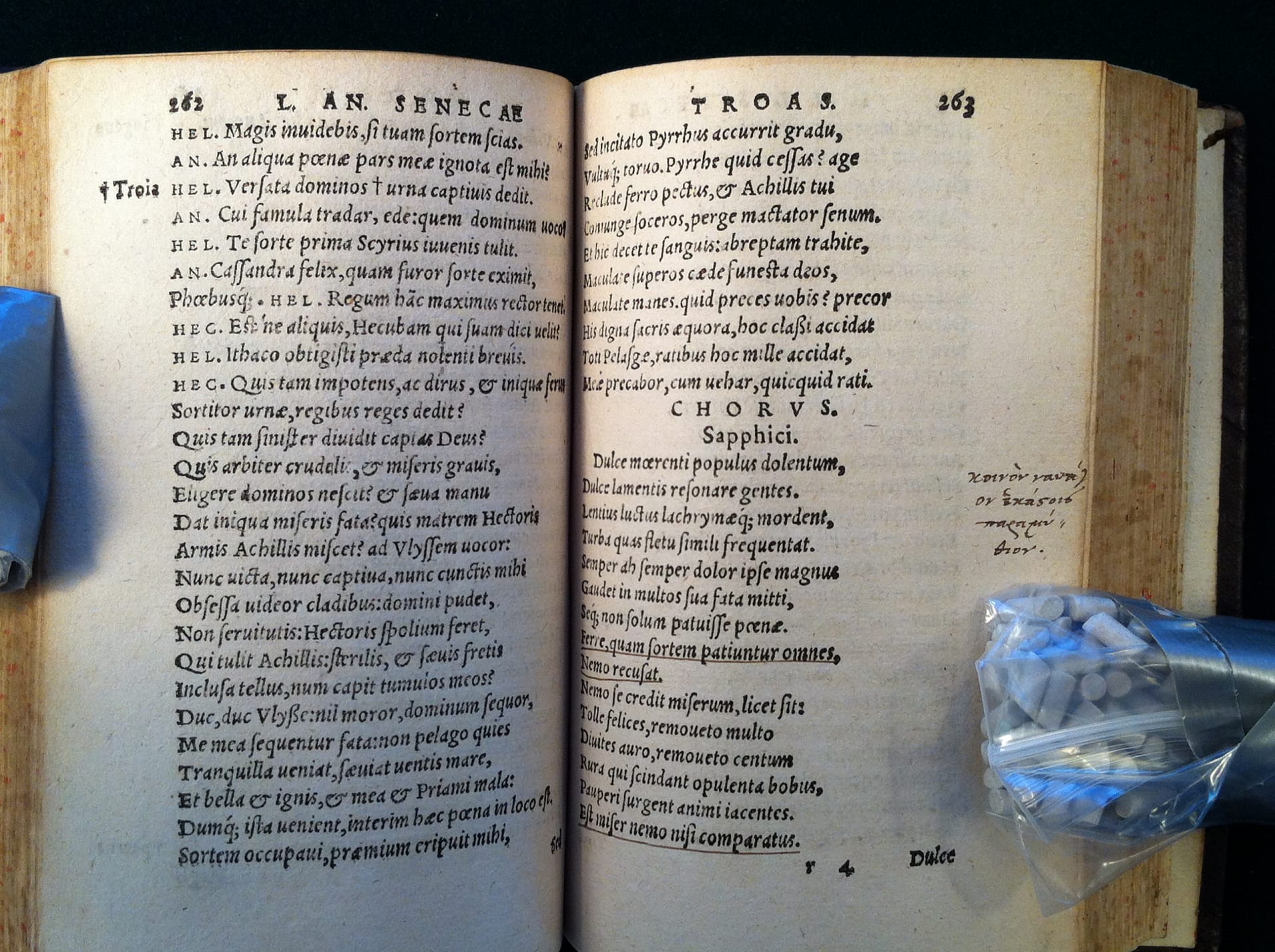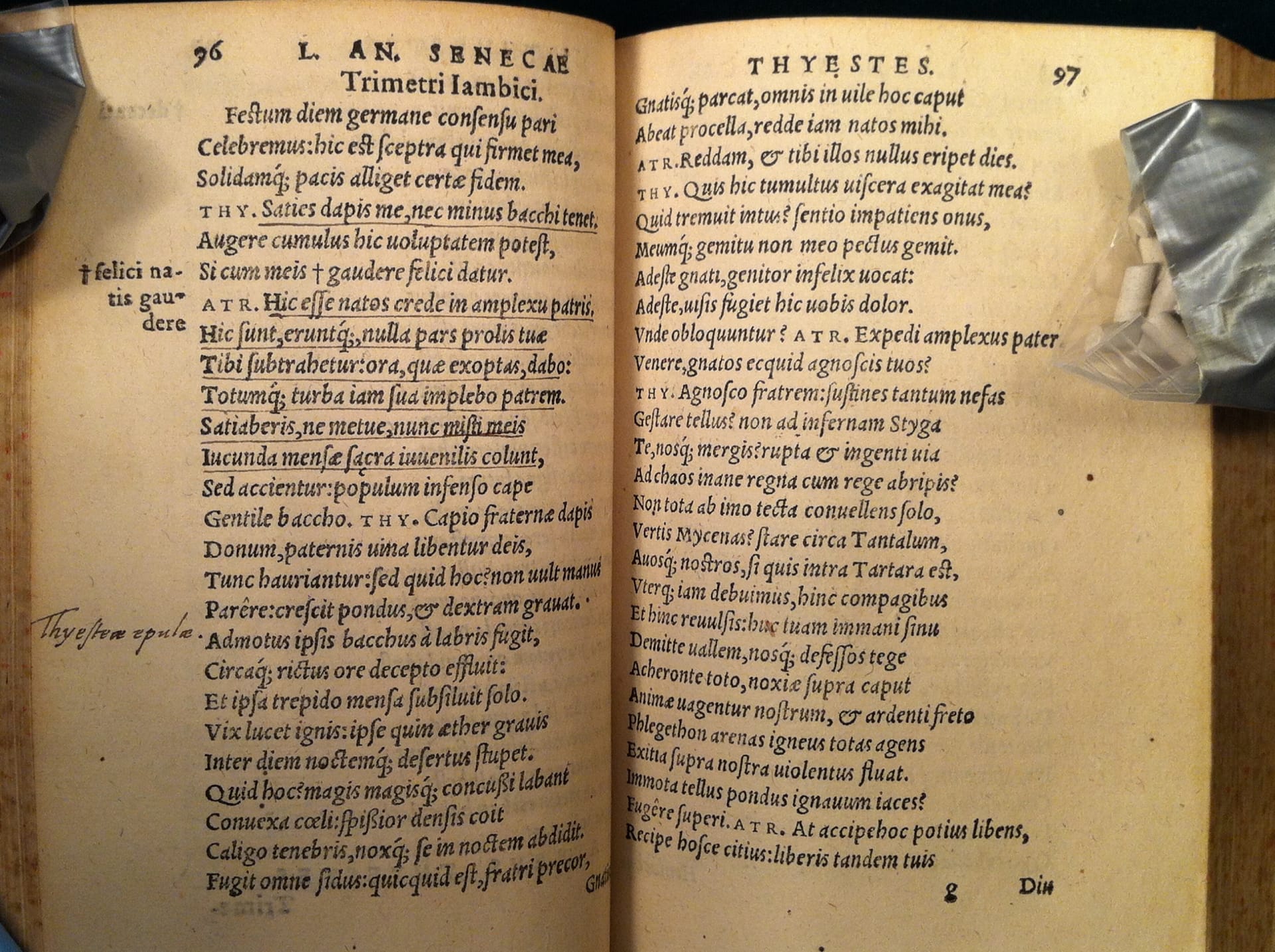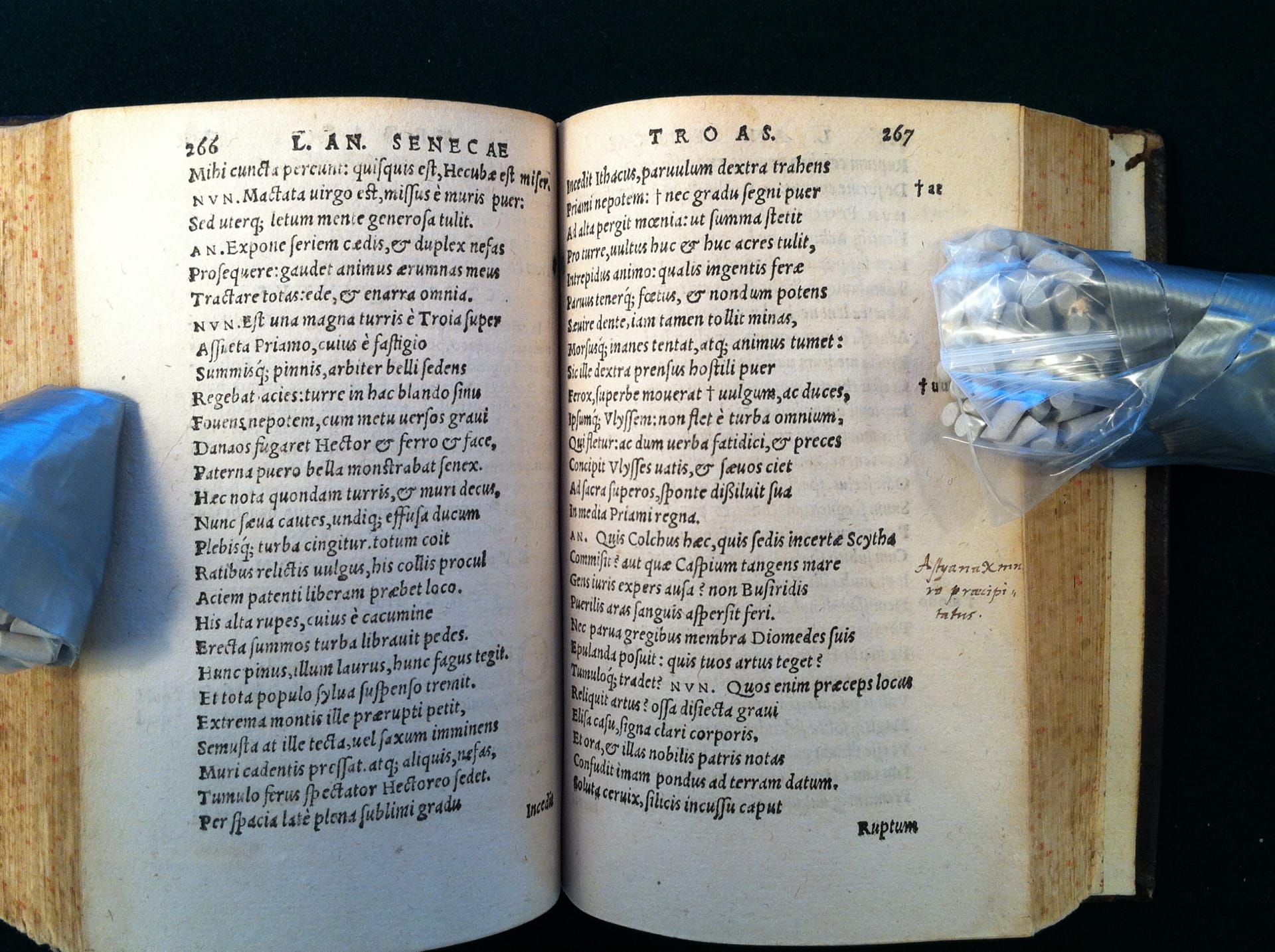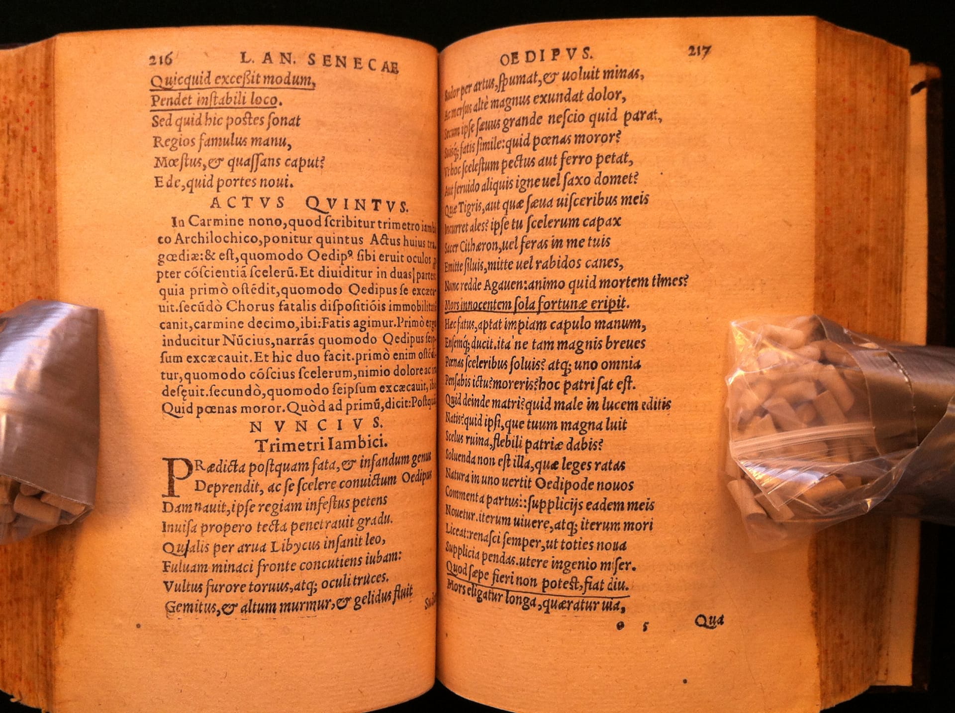 Provenance and Current Location: Provenance unknown. Purchased by an American collector in around 2015 and now in the Senate House Library’s Shakespeare Authorship Collection. The book is the 1563 edition of Seneca’s Ten Tragedies printed at Basil.