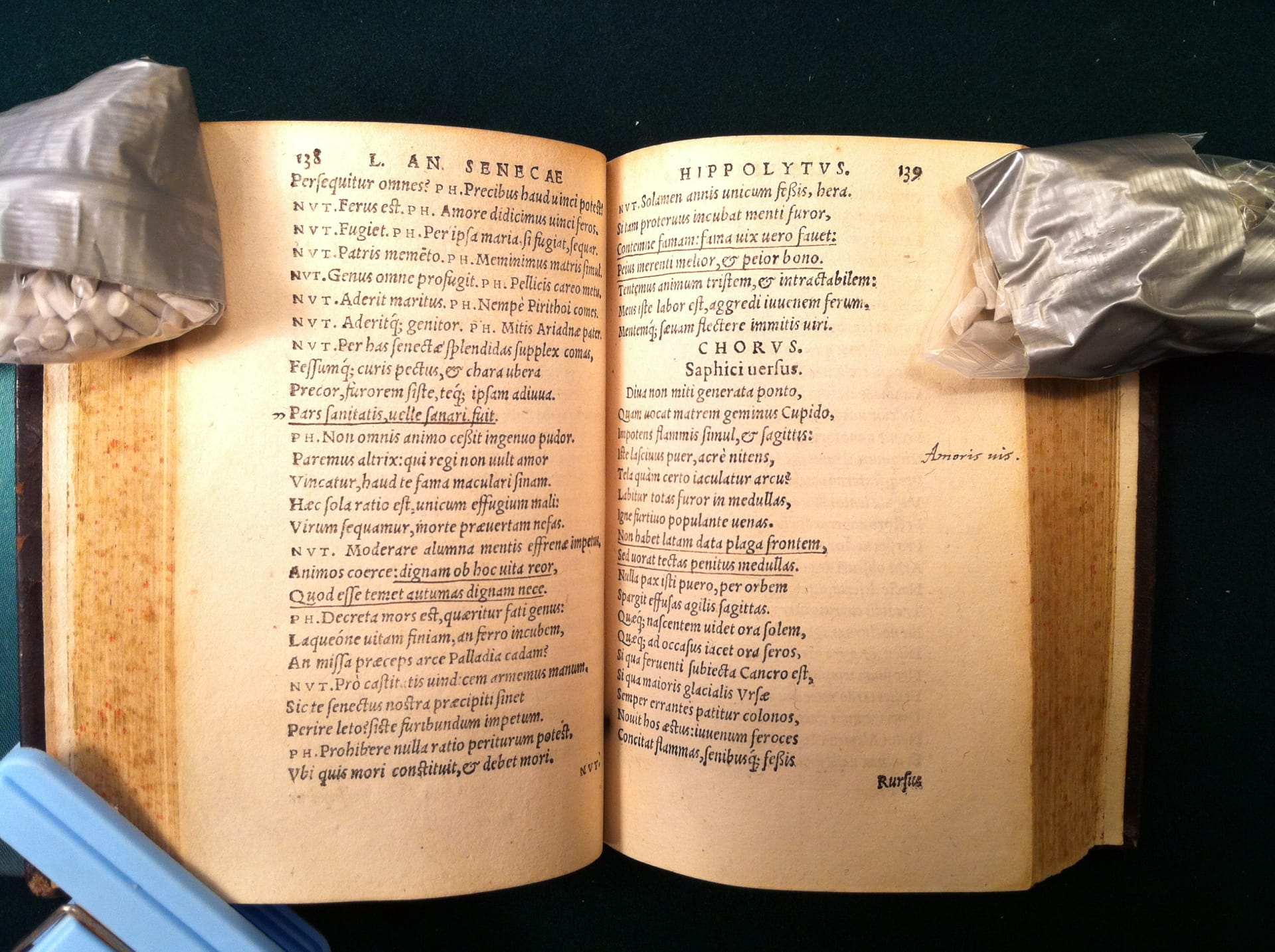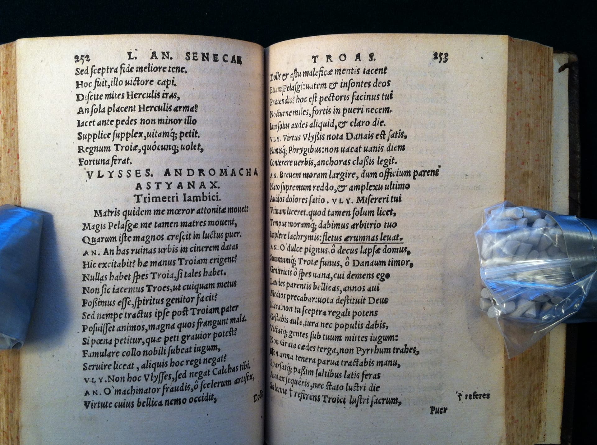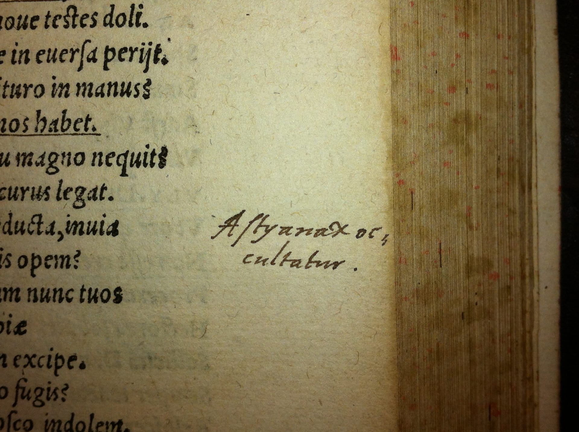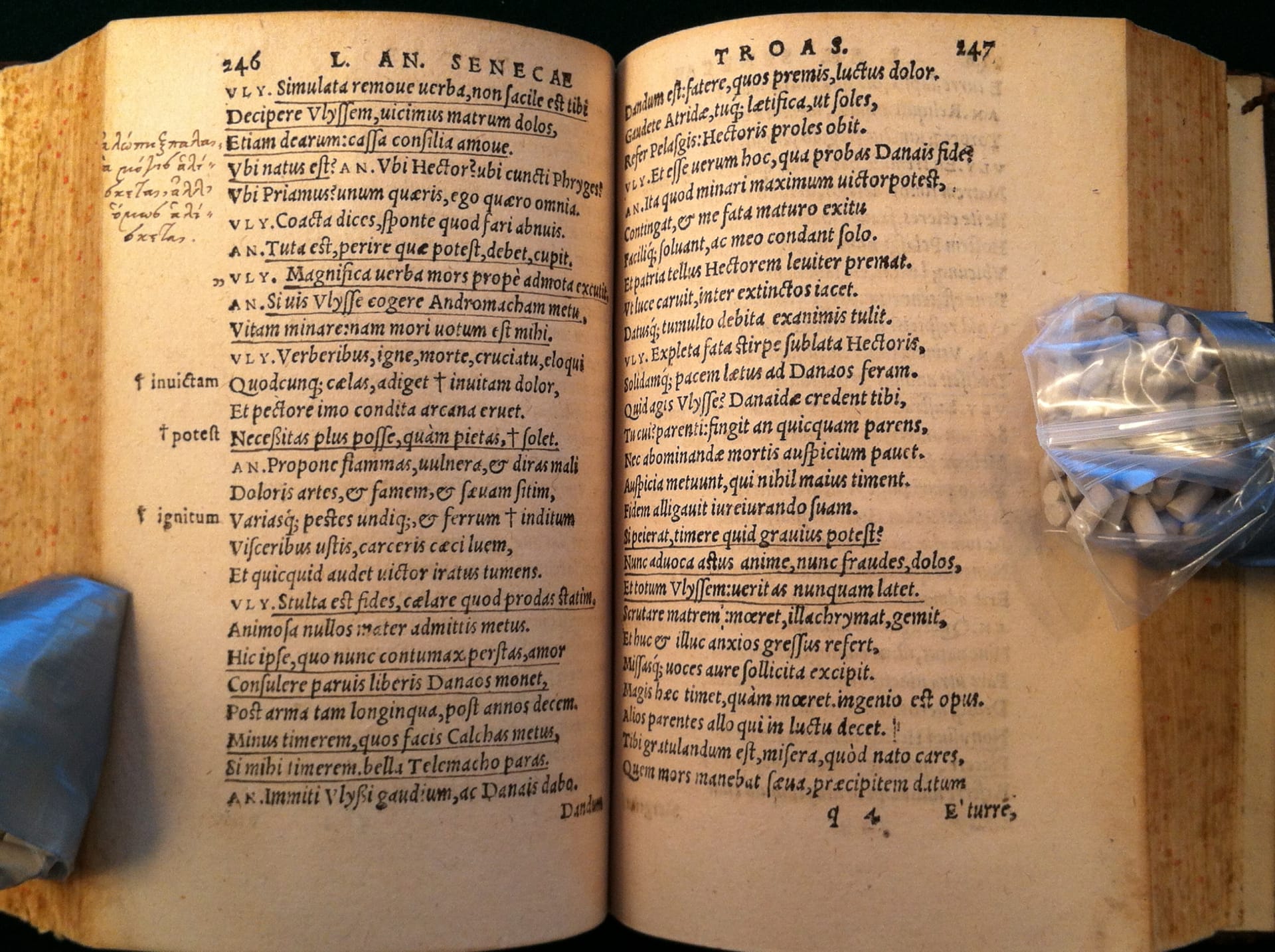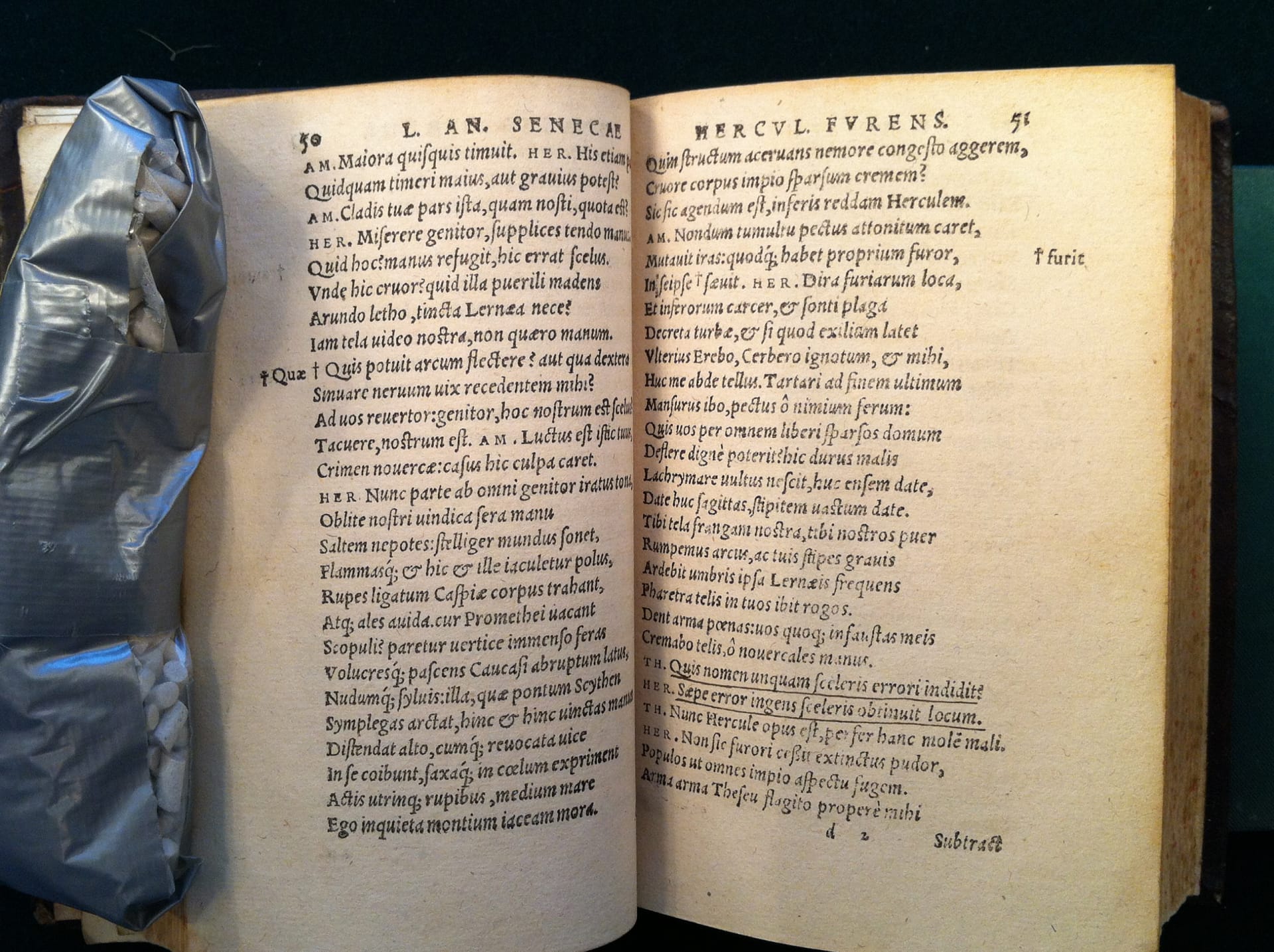Provenance and Current Location: Provenance unknown. Purchased by an American collector in around 2015 and now in the Senate House Library’s Shakespeare Authorship Collection. The book is the 1563 edition of Seneca’s Ten Tragedies printed at Basil.