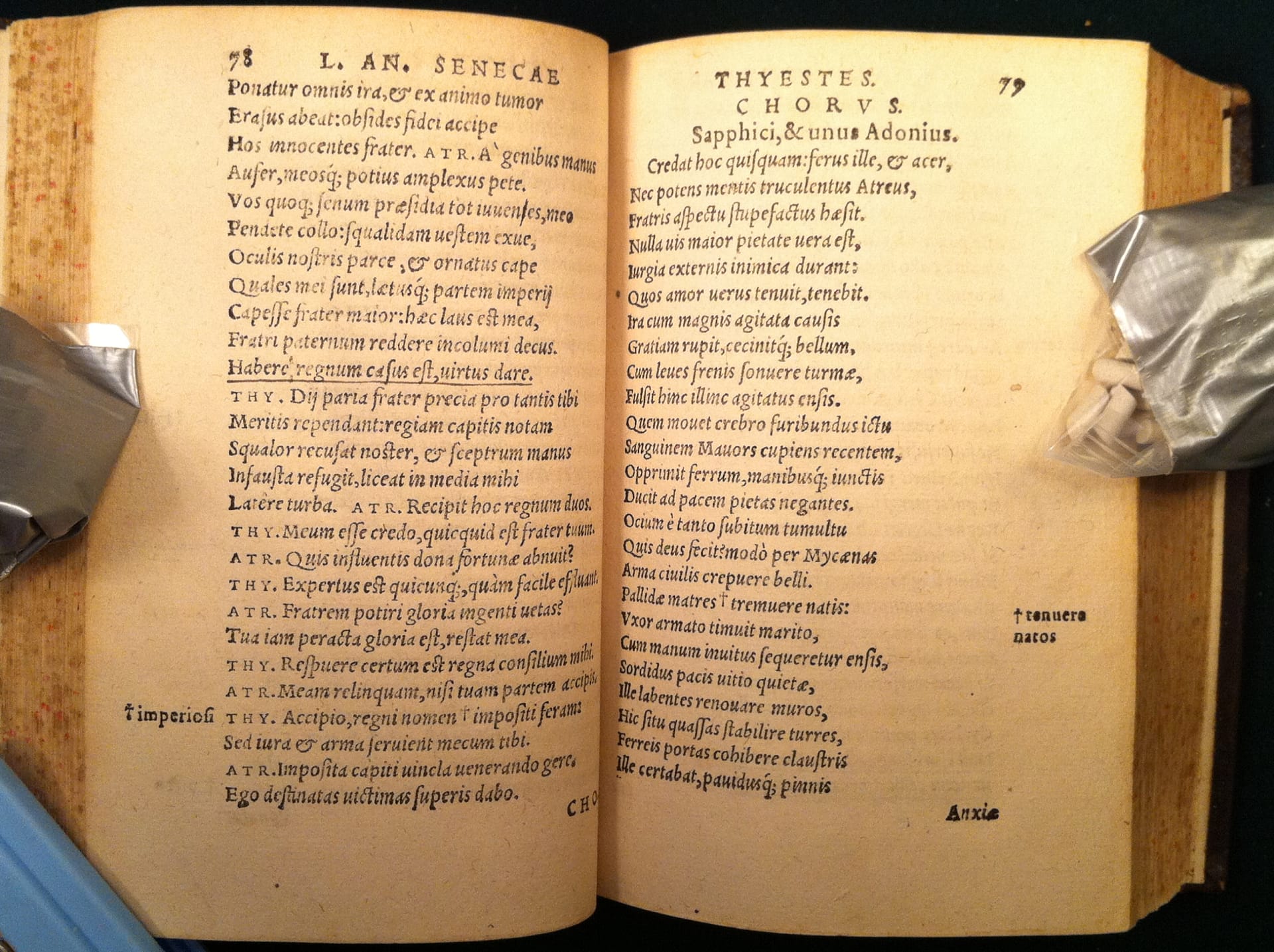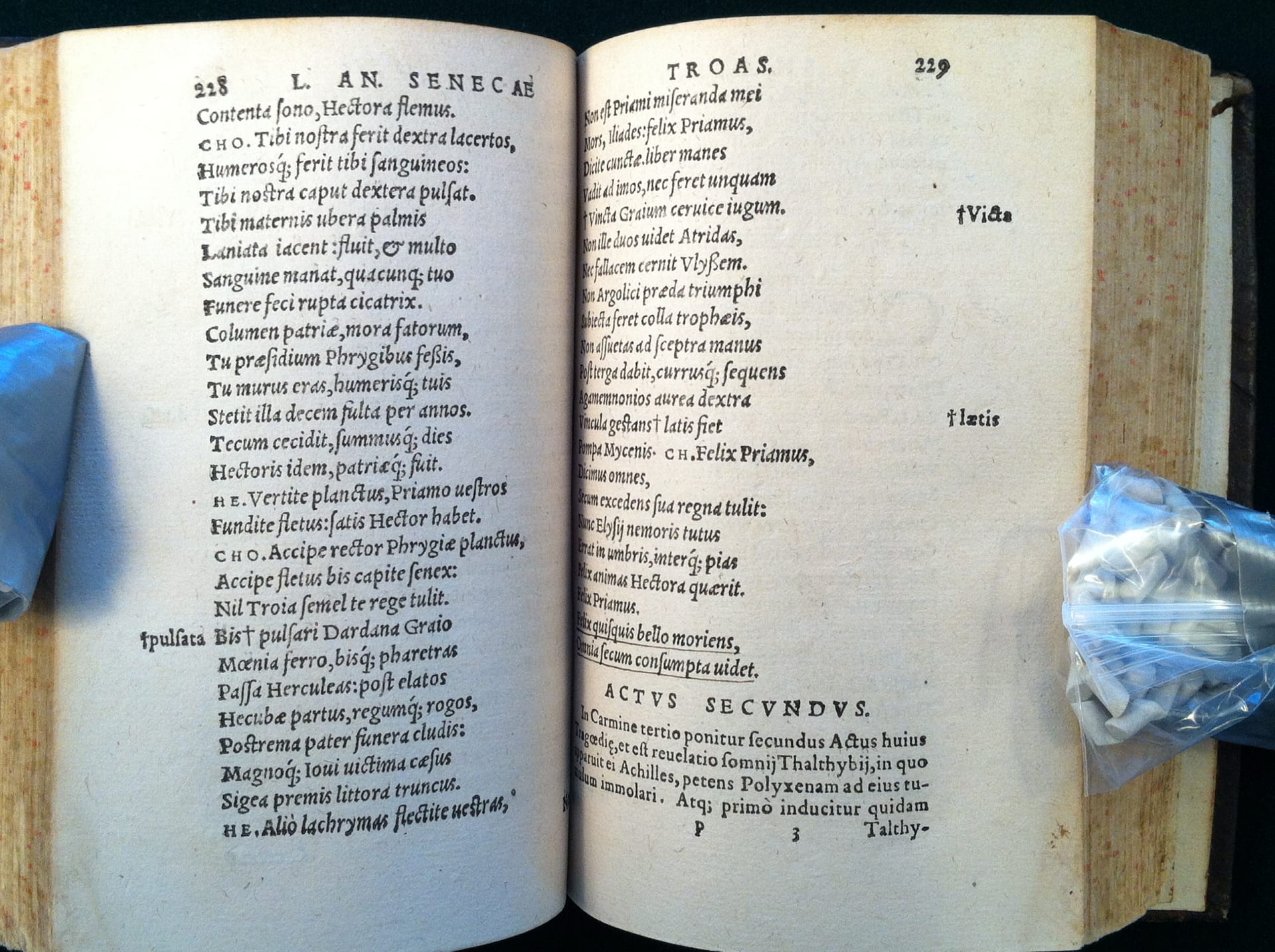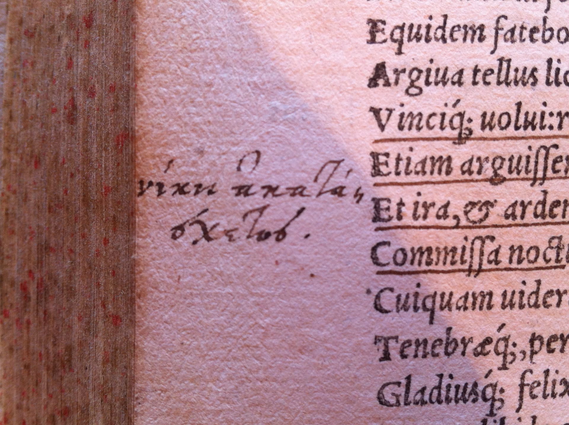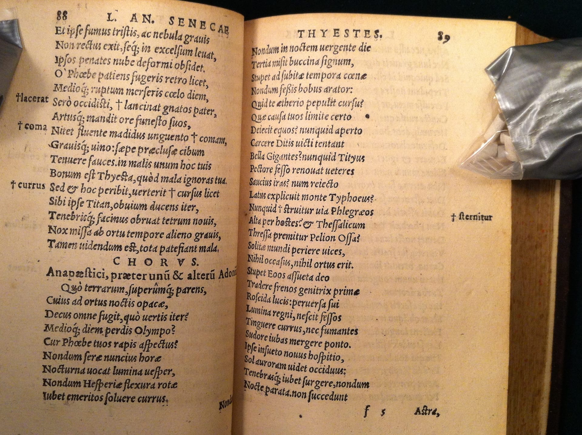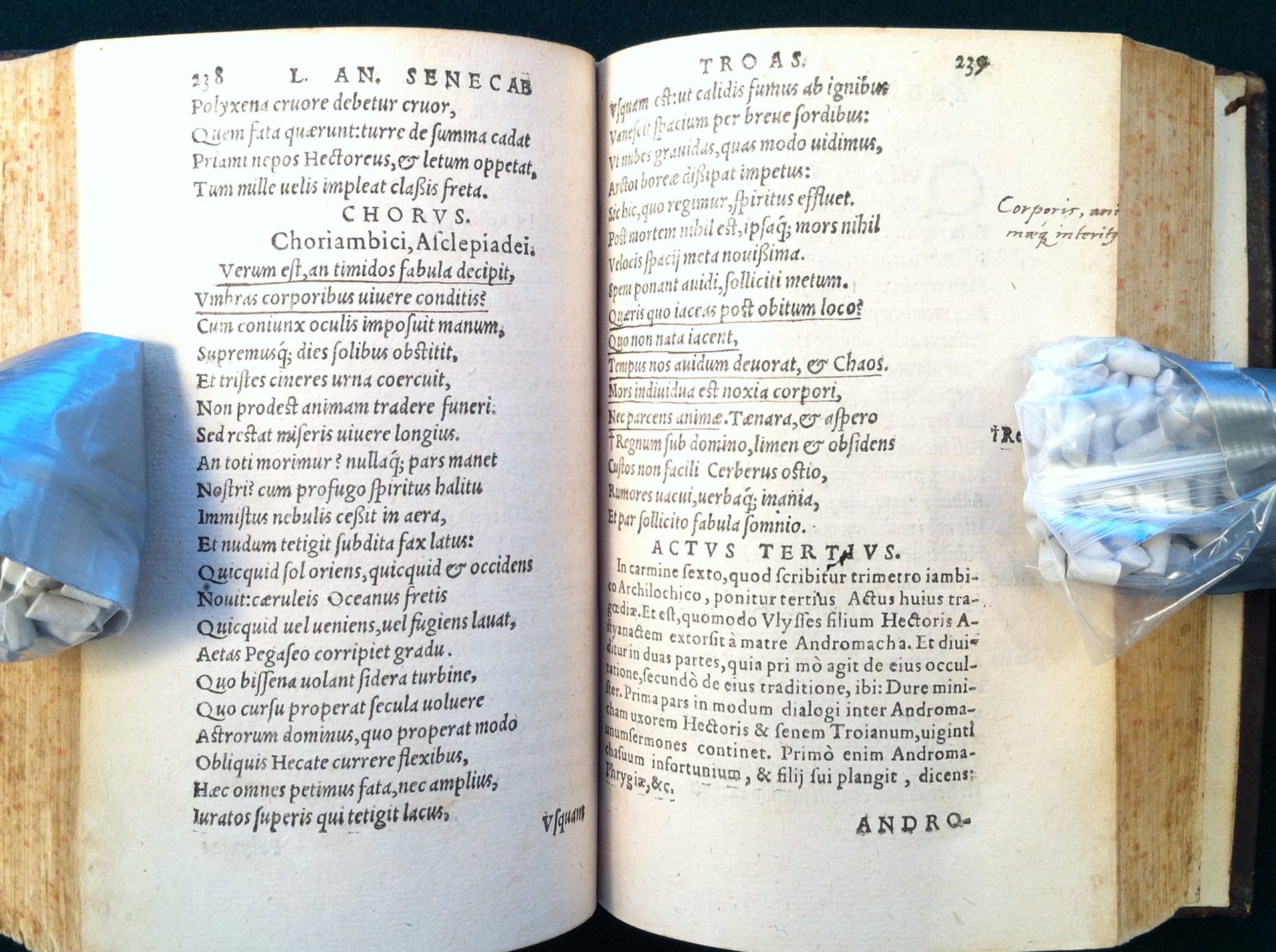 Provenance and Current Location: Provenance unknown. Purchased by an American collector in around 2015 and now in the Senate House Library’s Shakespeare Authorship Collection. The book is the 1563 edition of Seneca’s Ten Tragedies printed at Basil.