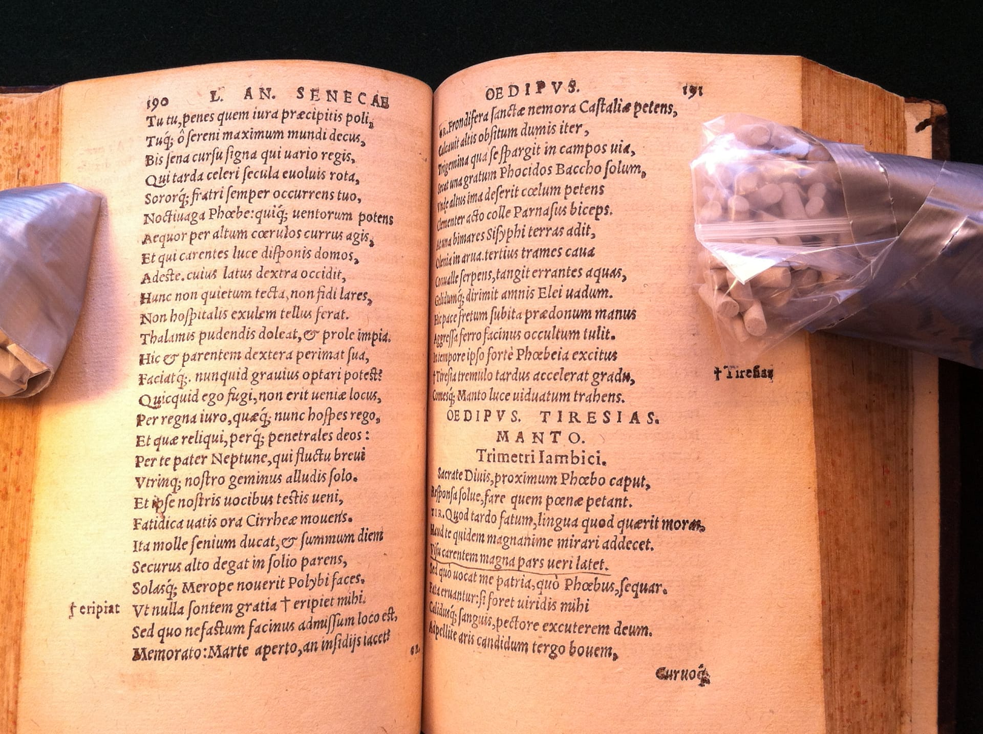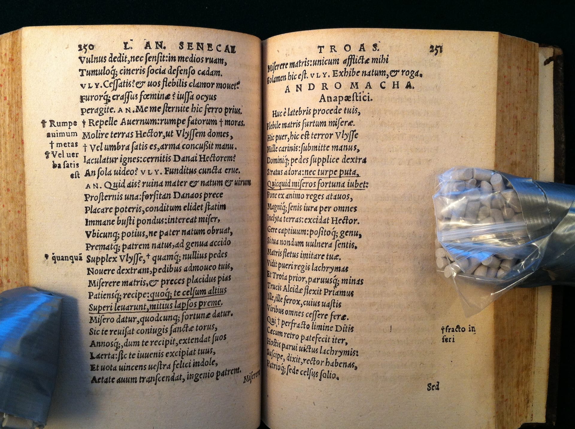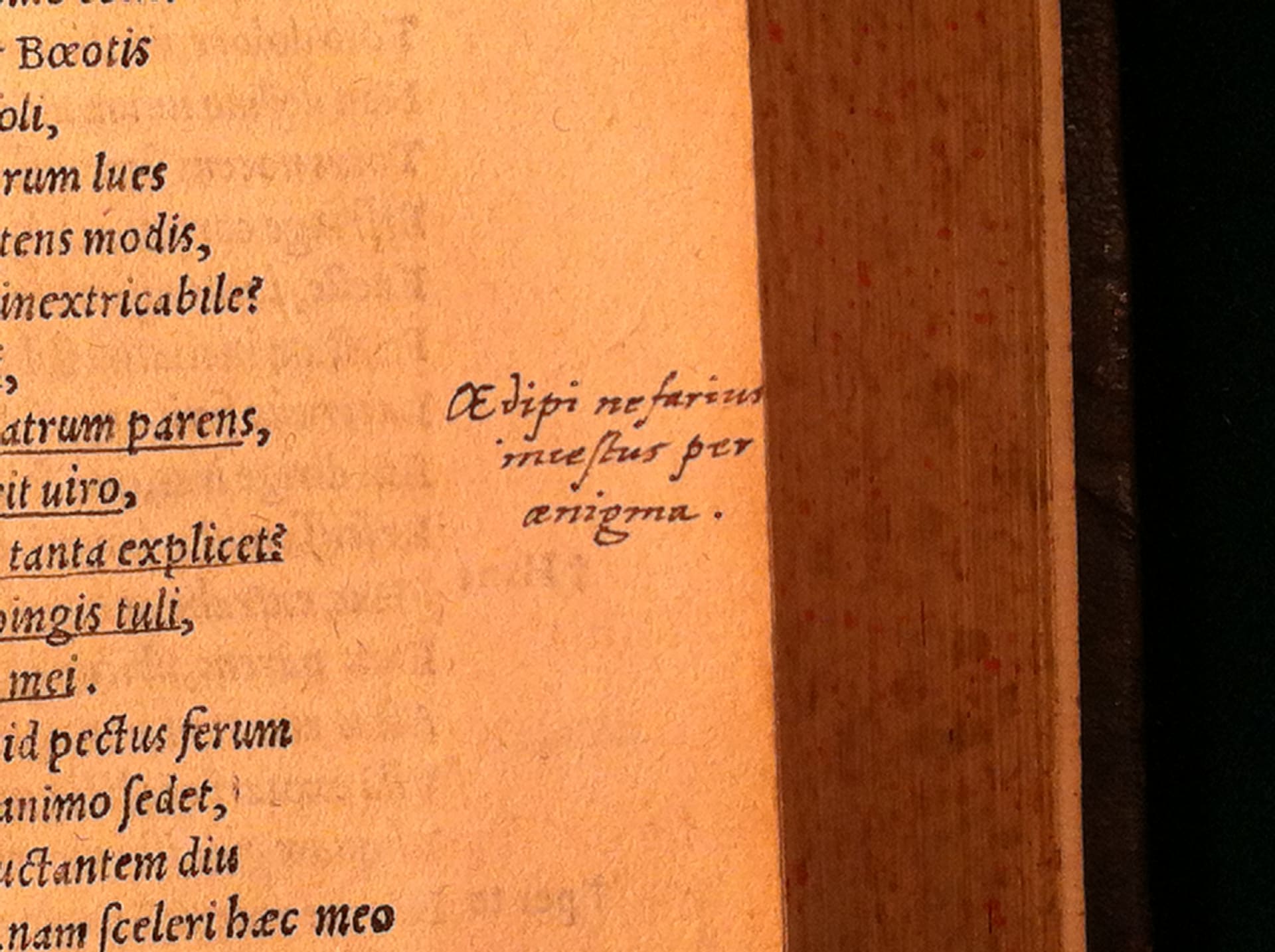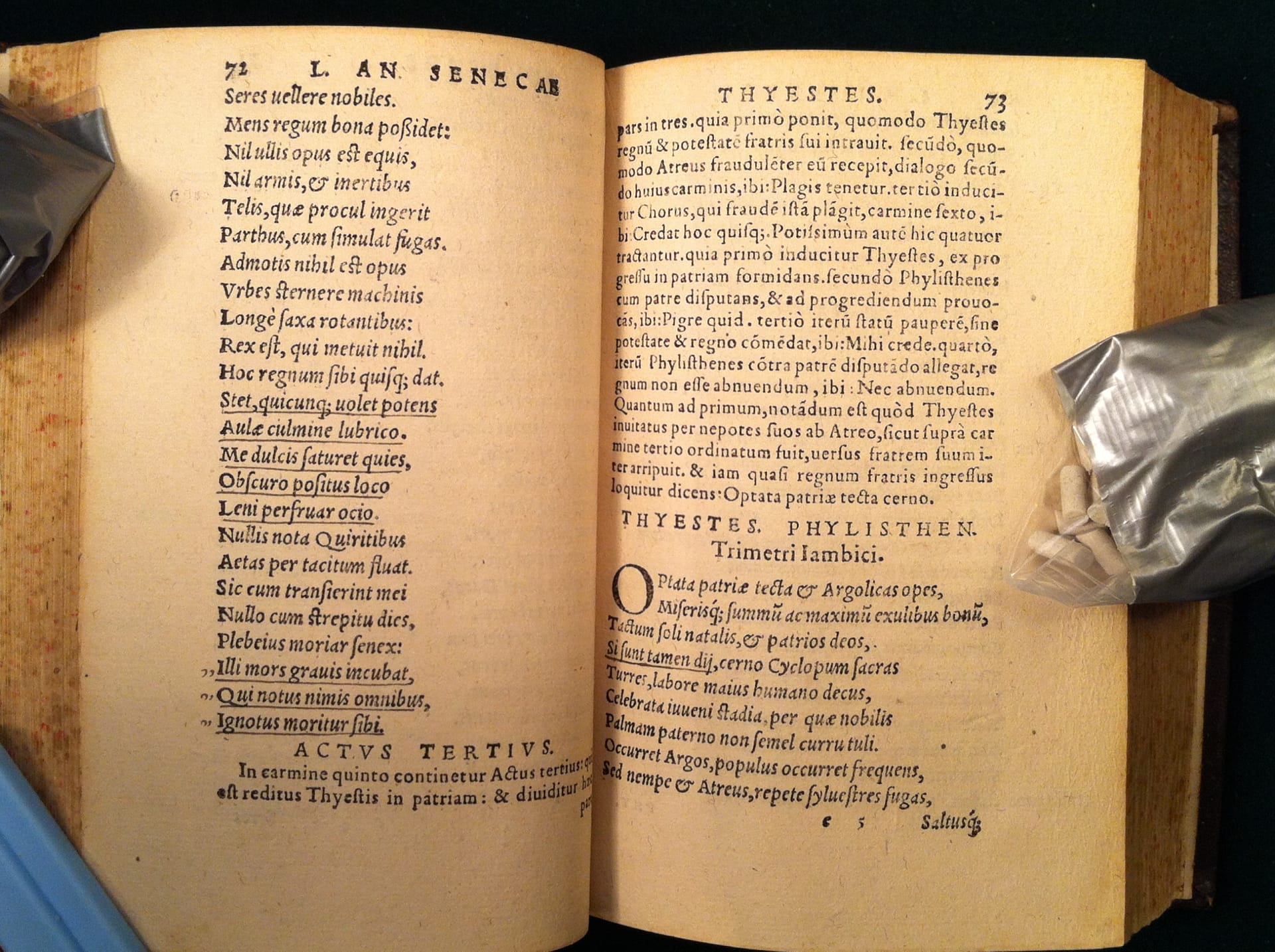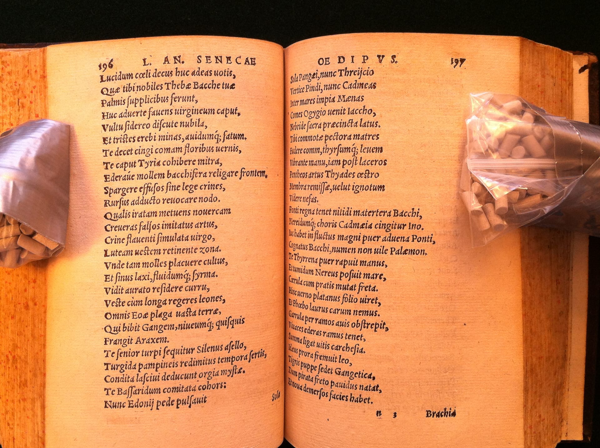 Provenance and Current Location: Provenance unknown. Purchased by an American collector in around 2015 and now in the Senate House Library’s Shakespeare Authorship Collection. The book is the 1563 edition of Seneca’s Ten Tragedies printed at Basil.