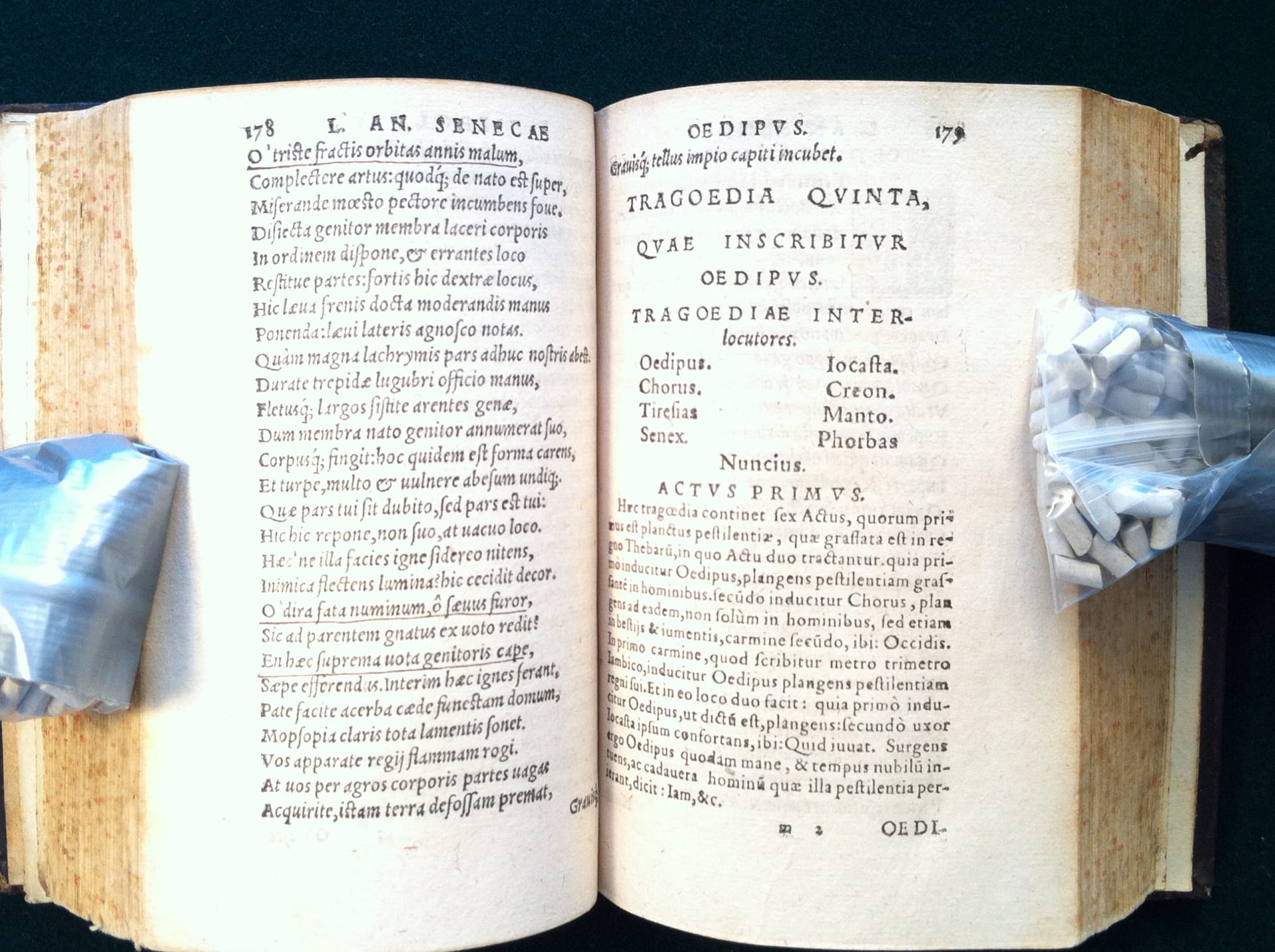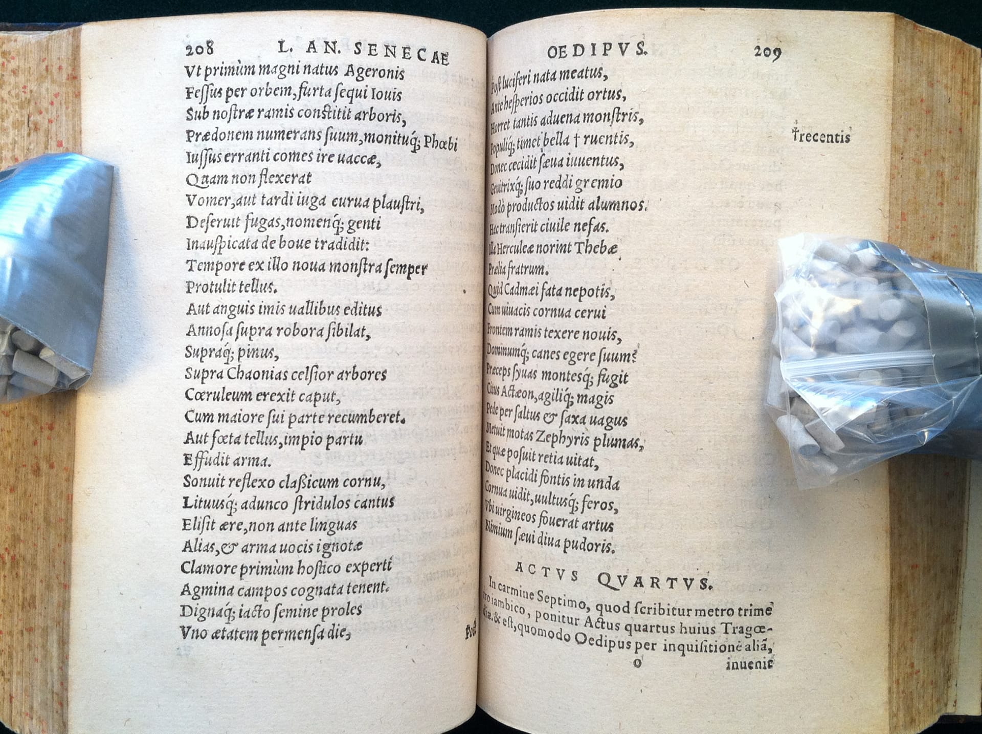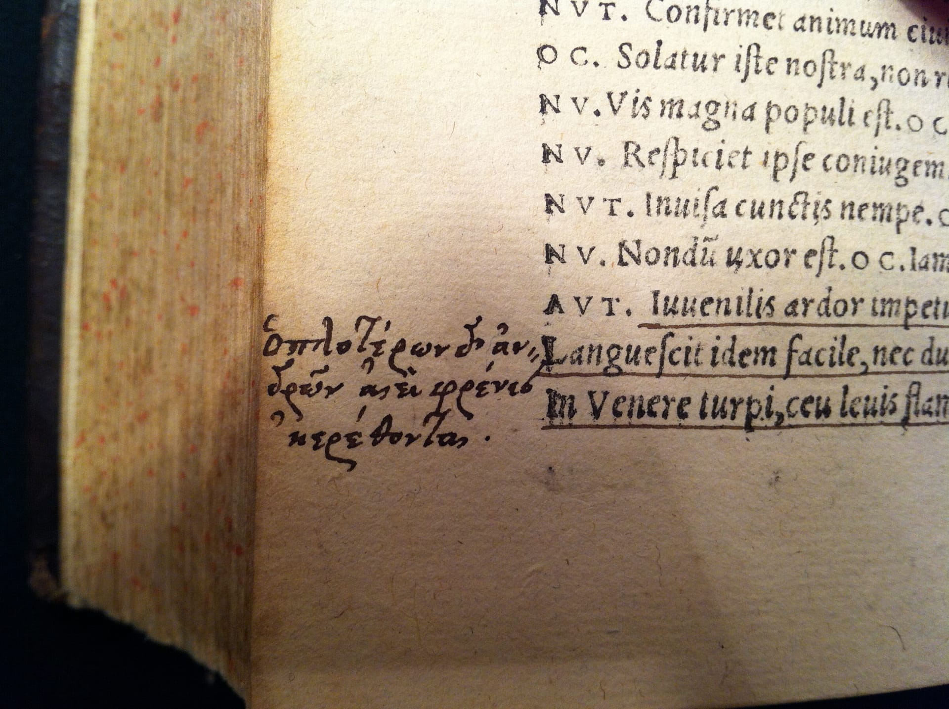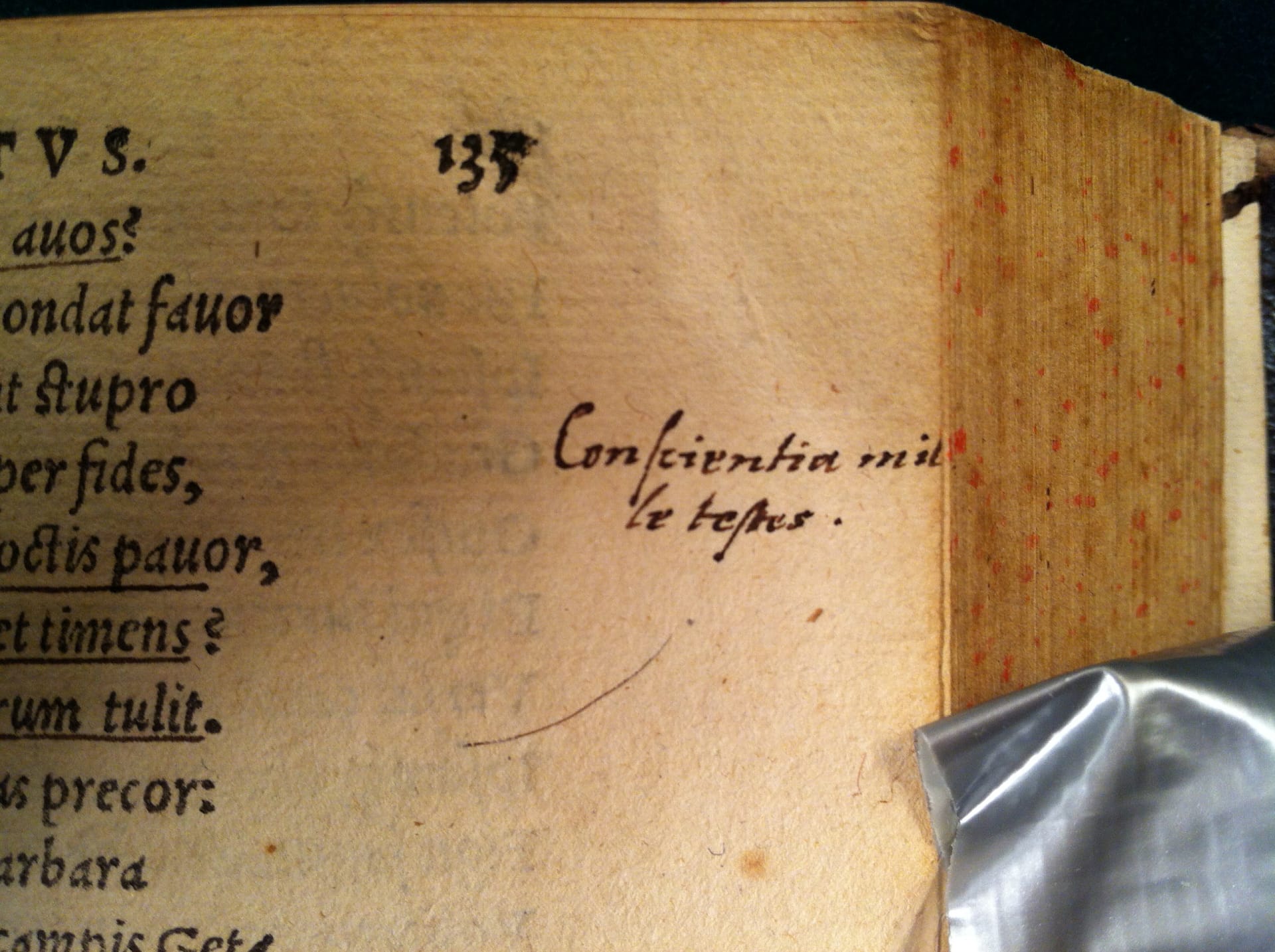 Provenance and Current Location: Provenance unknown. Purchased by an American collector in around 2015 and now in the Senate House Library’s Shakespeare Authorship Collection. The book is the 1563 edition of Seneca’s Ten Tragedies printed at Basil.