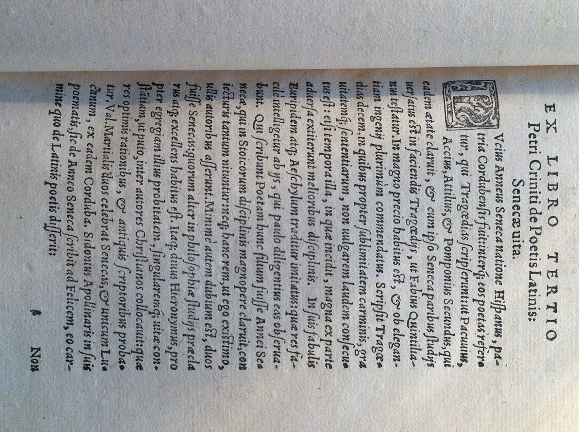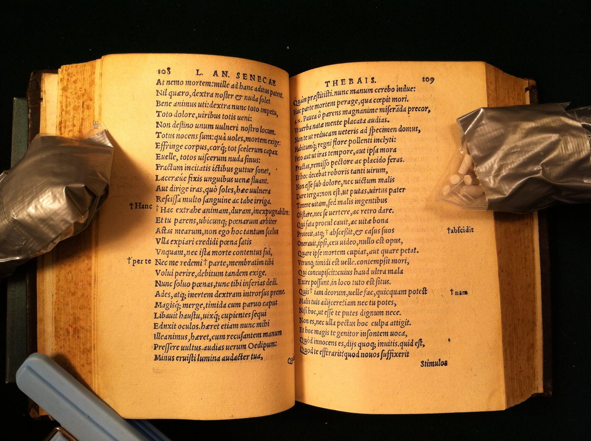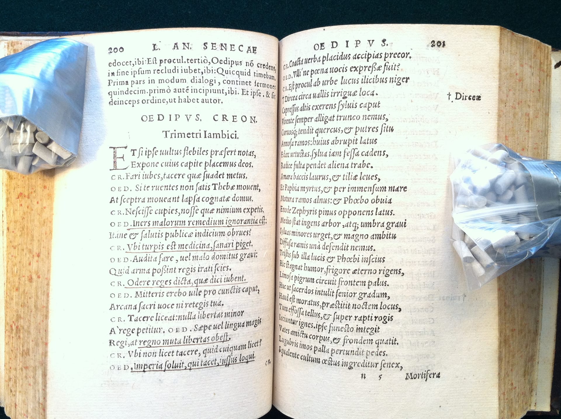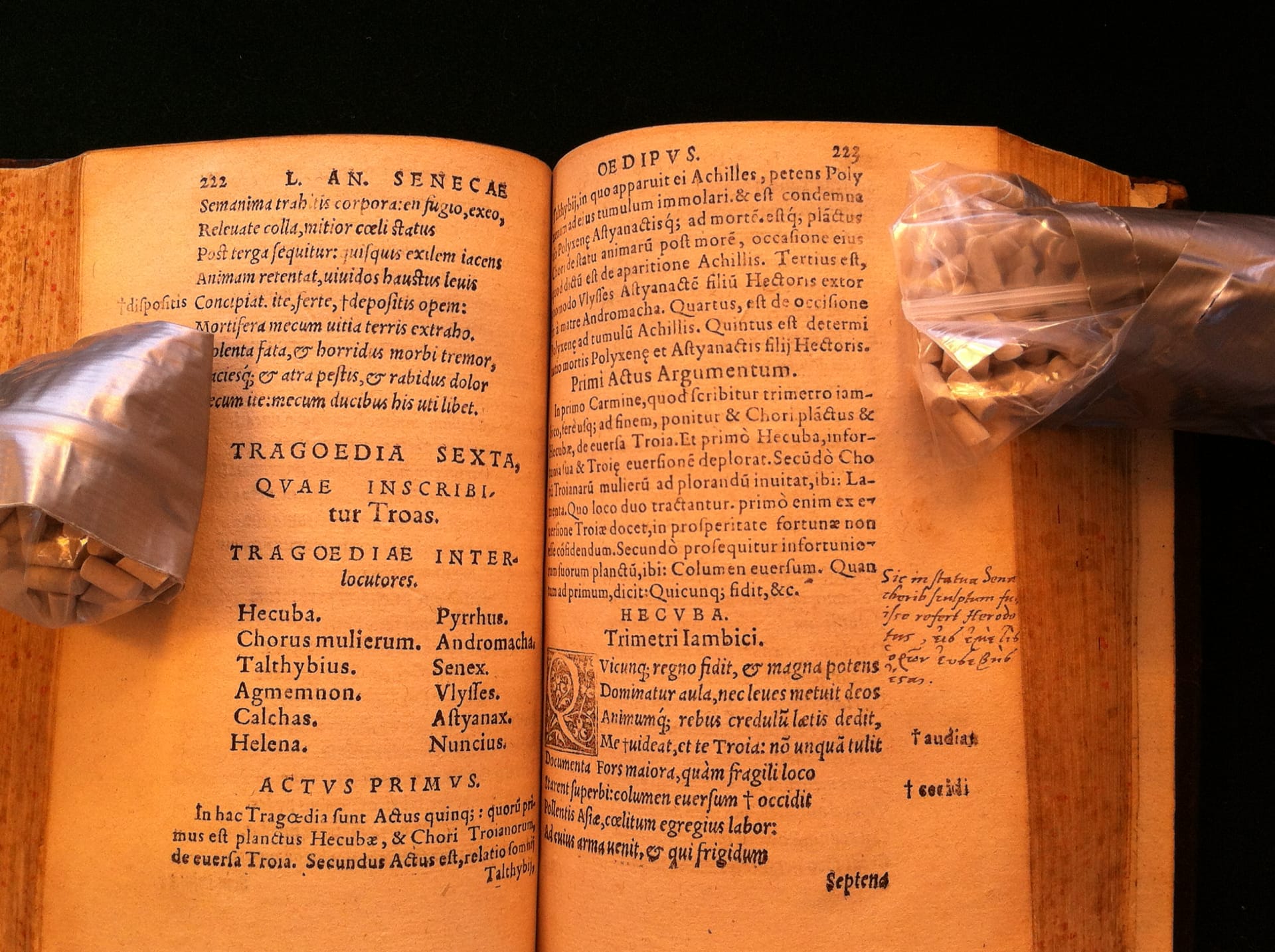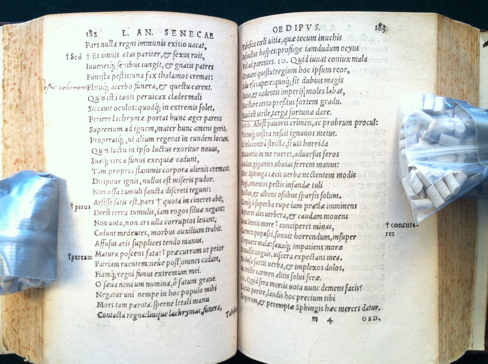 Provenance and Current Location: Provenance unknown. Purchased by an American collector in around 2015 and now in the Senate House Library’s Shakespeare Authorship Collection. The book is the 1563 edition of Seneca’s Ten Tragedies printed at Basil.
