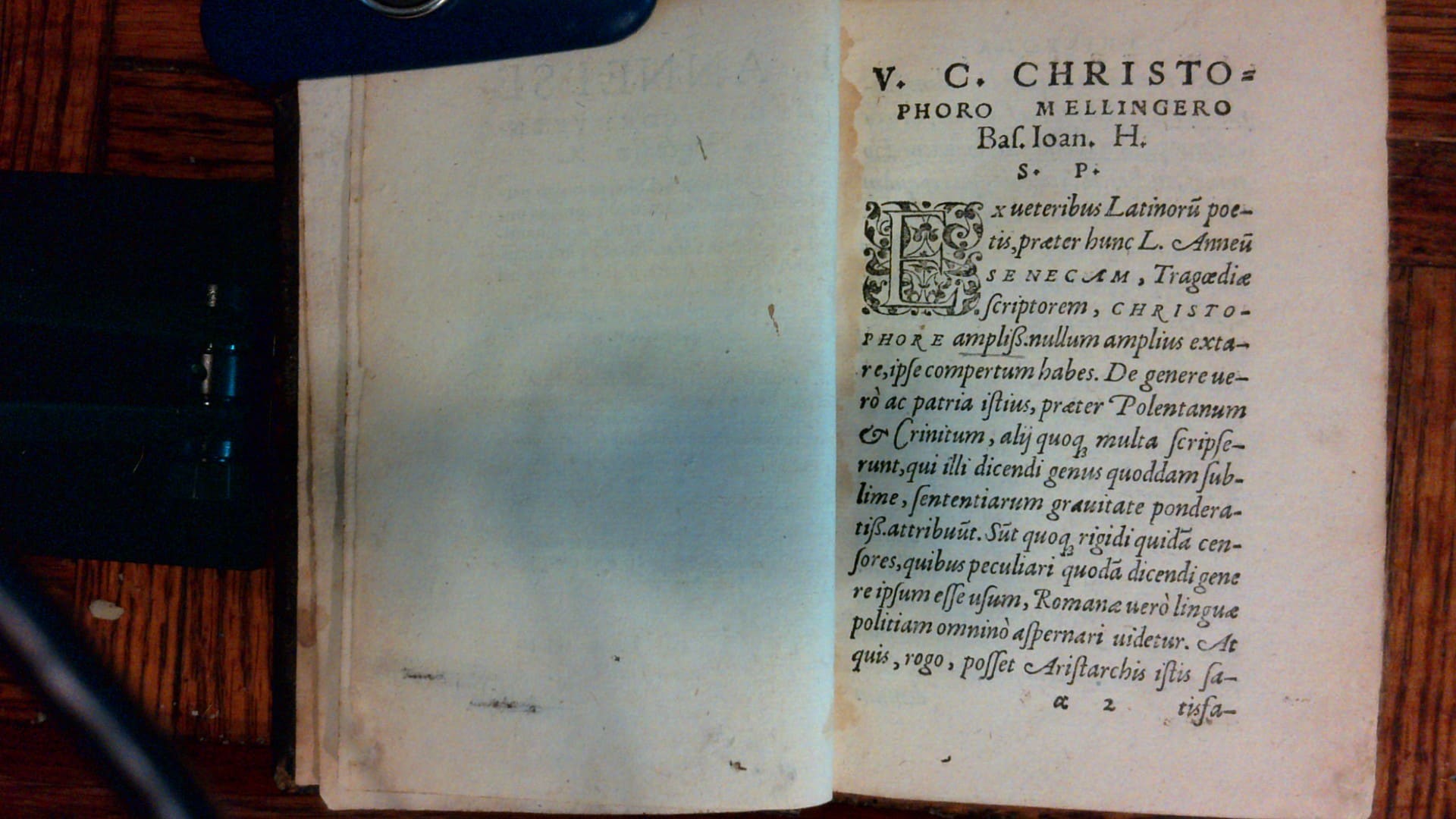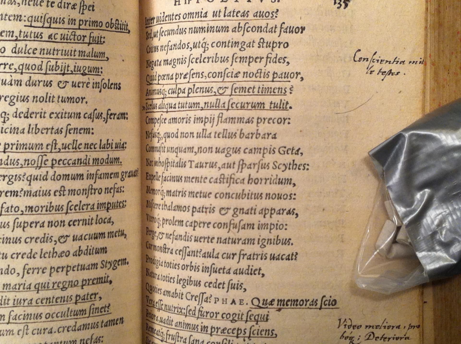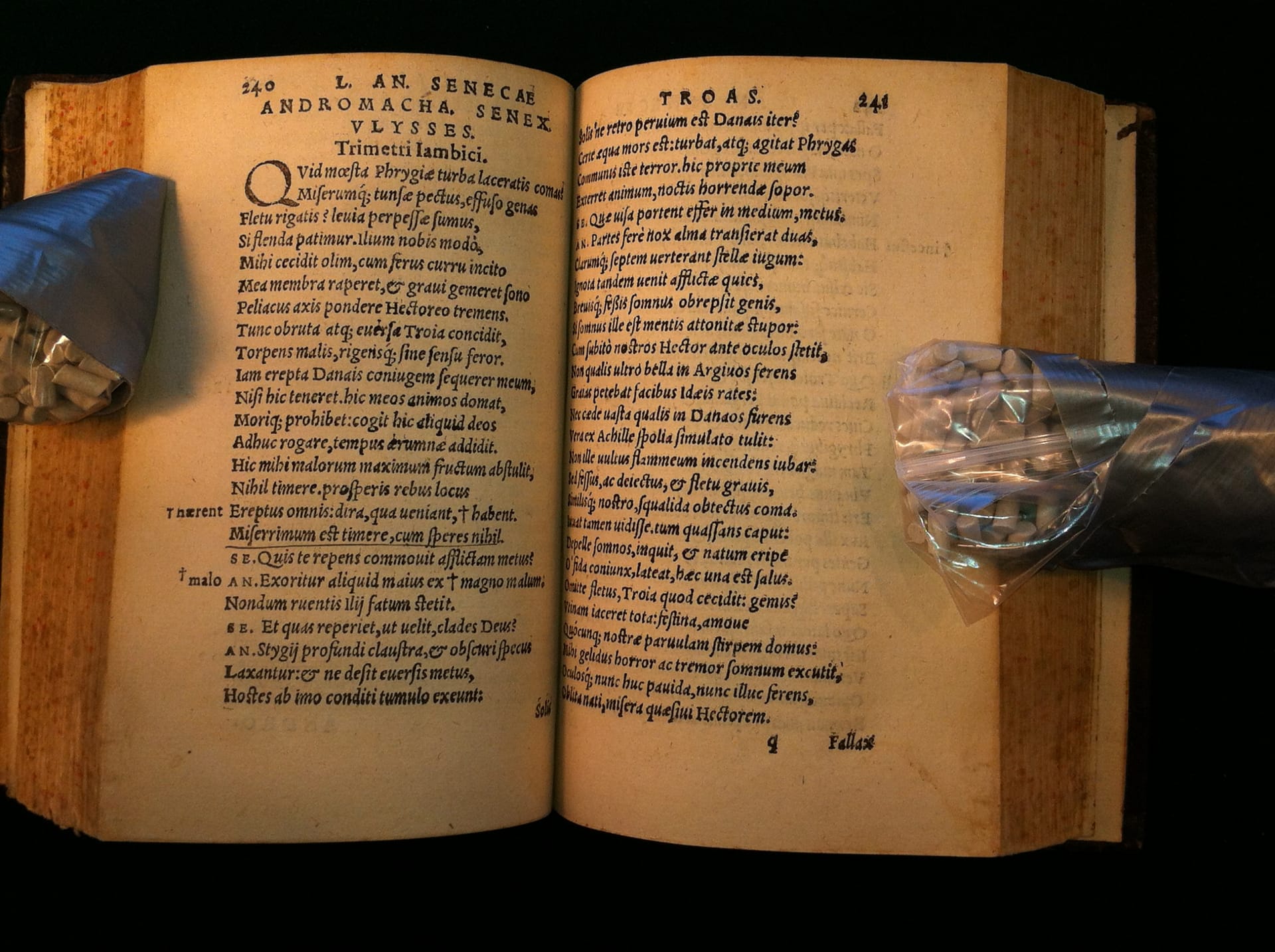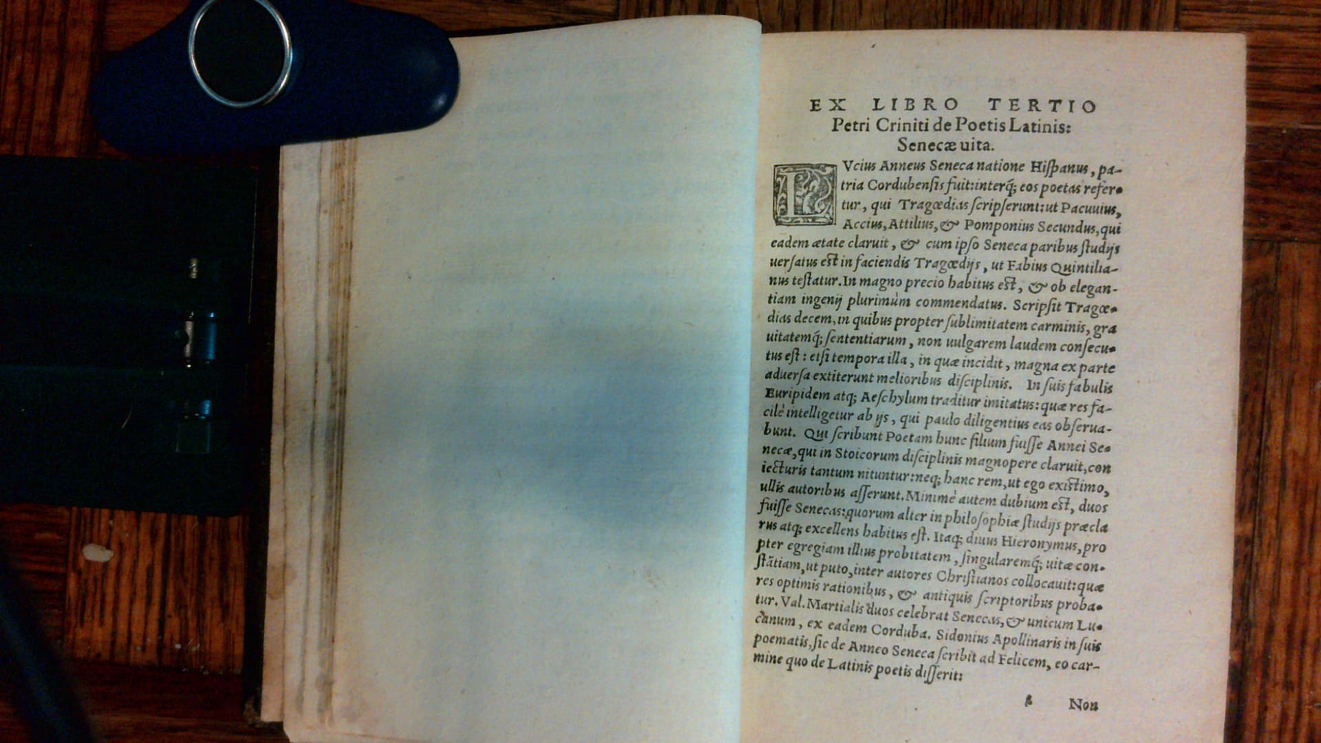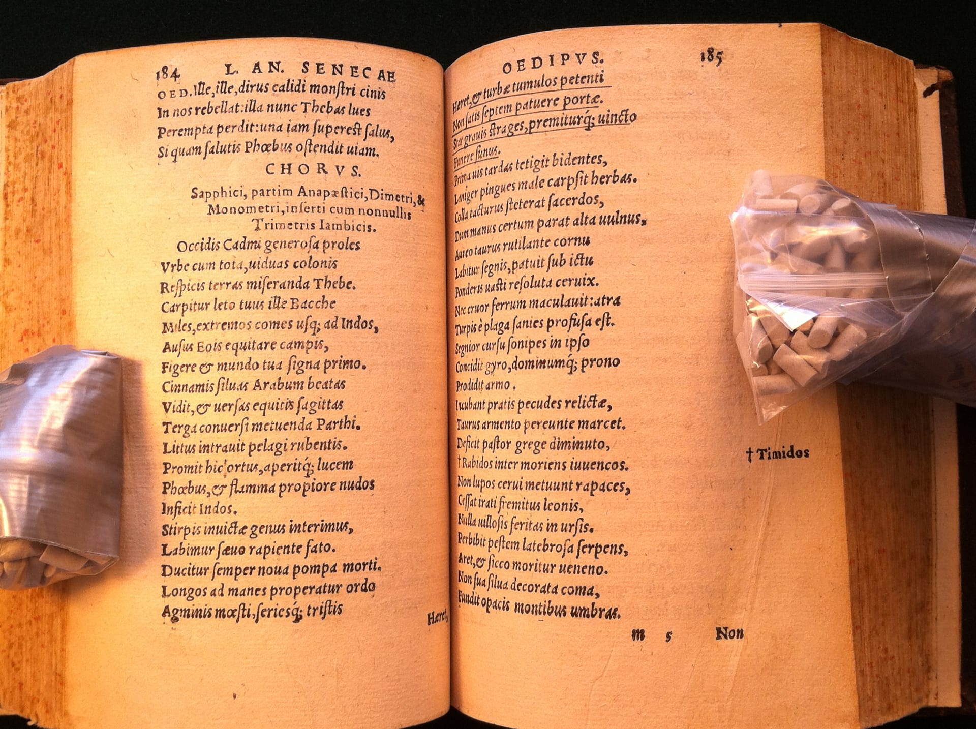 Provenance and Current Location: Provenance unknown. Purchased by an American collector in around 2015 and now in the Senate House Library’s Shakespeare Authorship Collection. The book is the 1563 edition of Seneca’s Ten Tragedies printed at Basil.