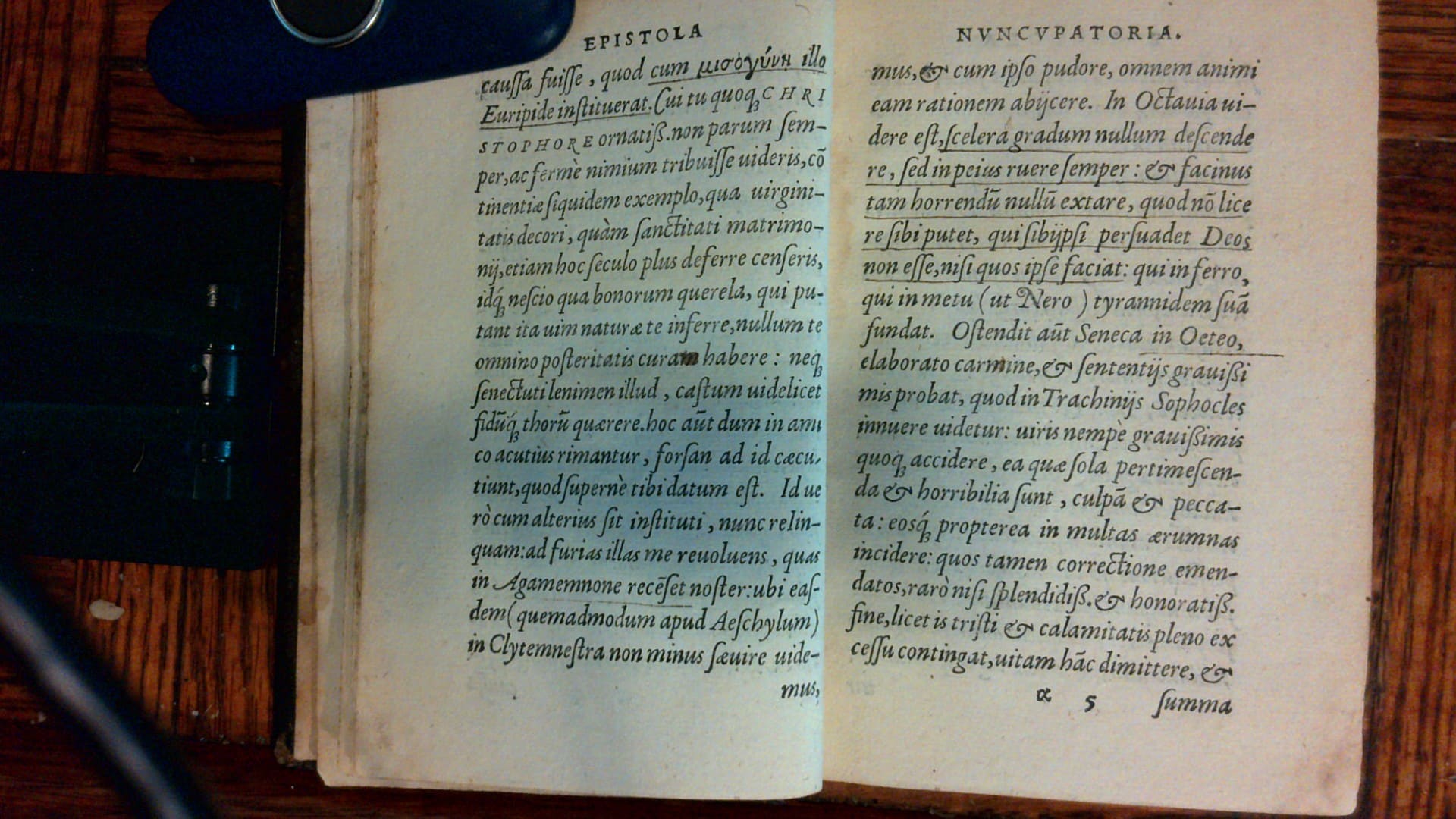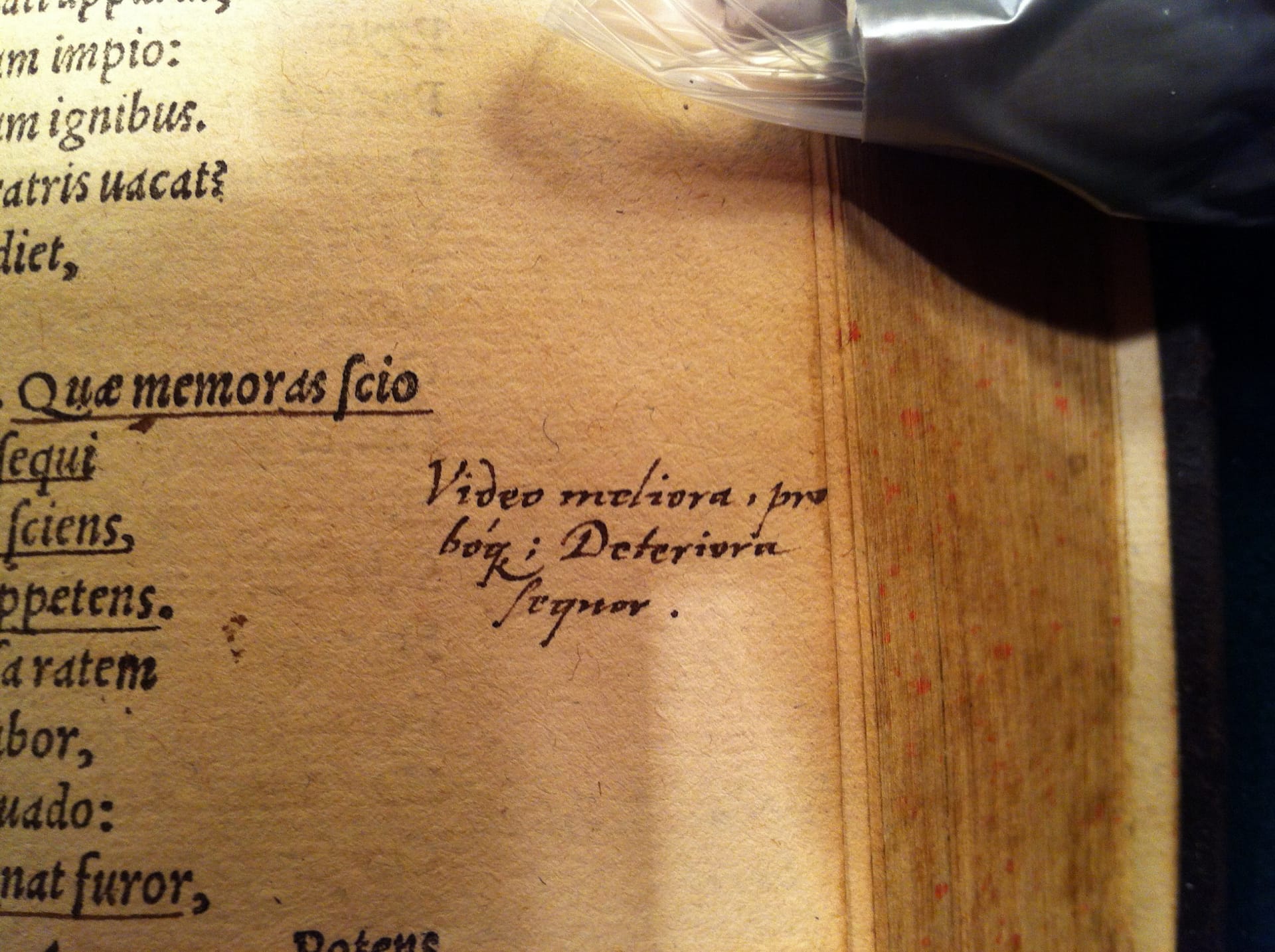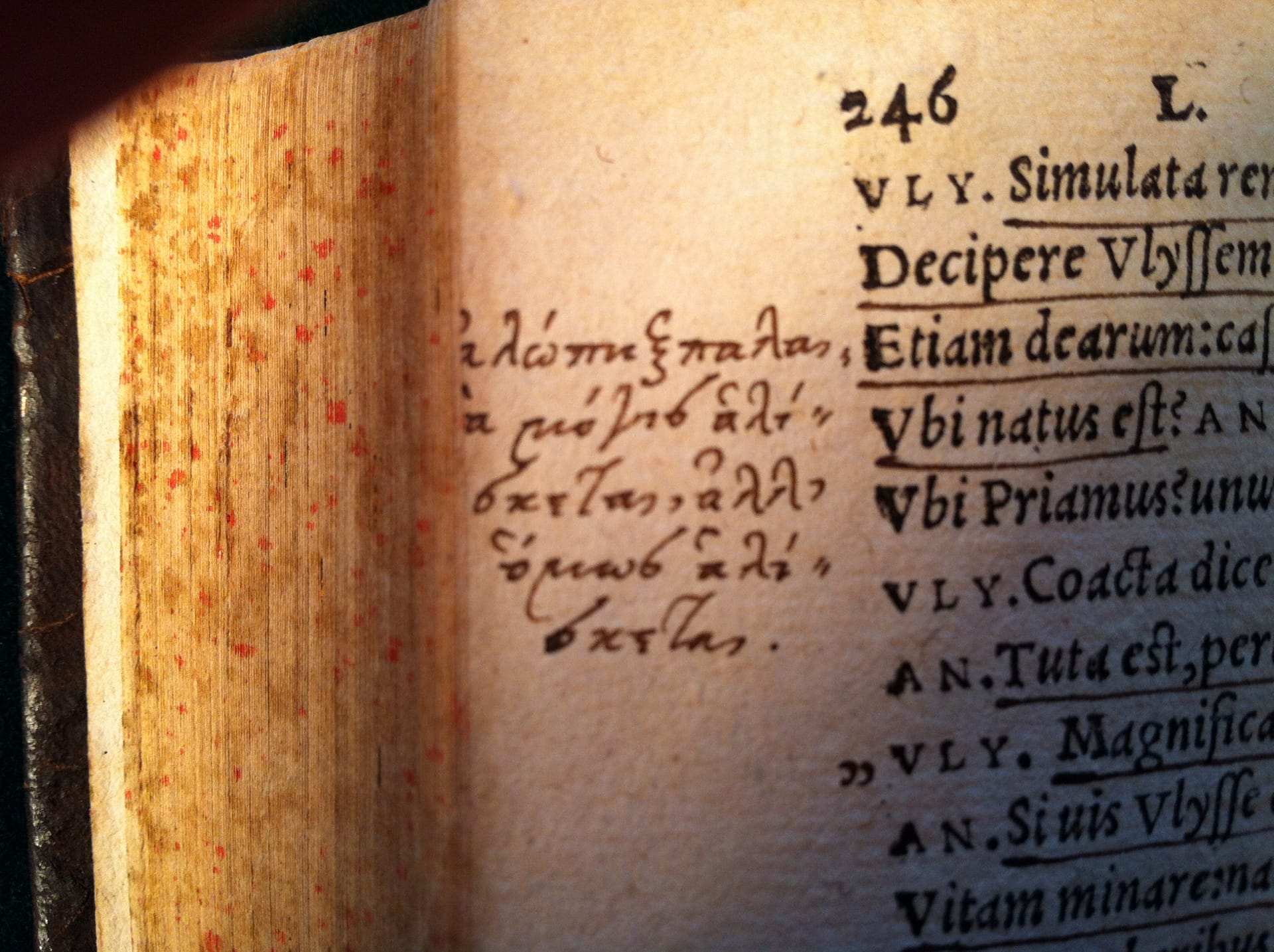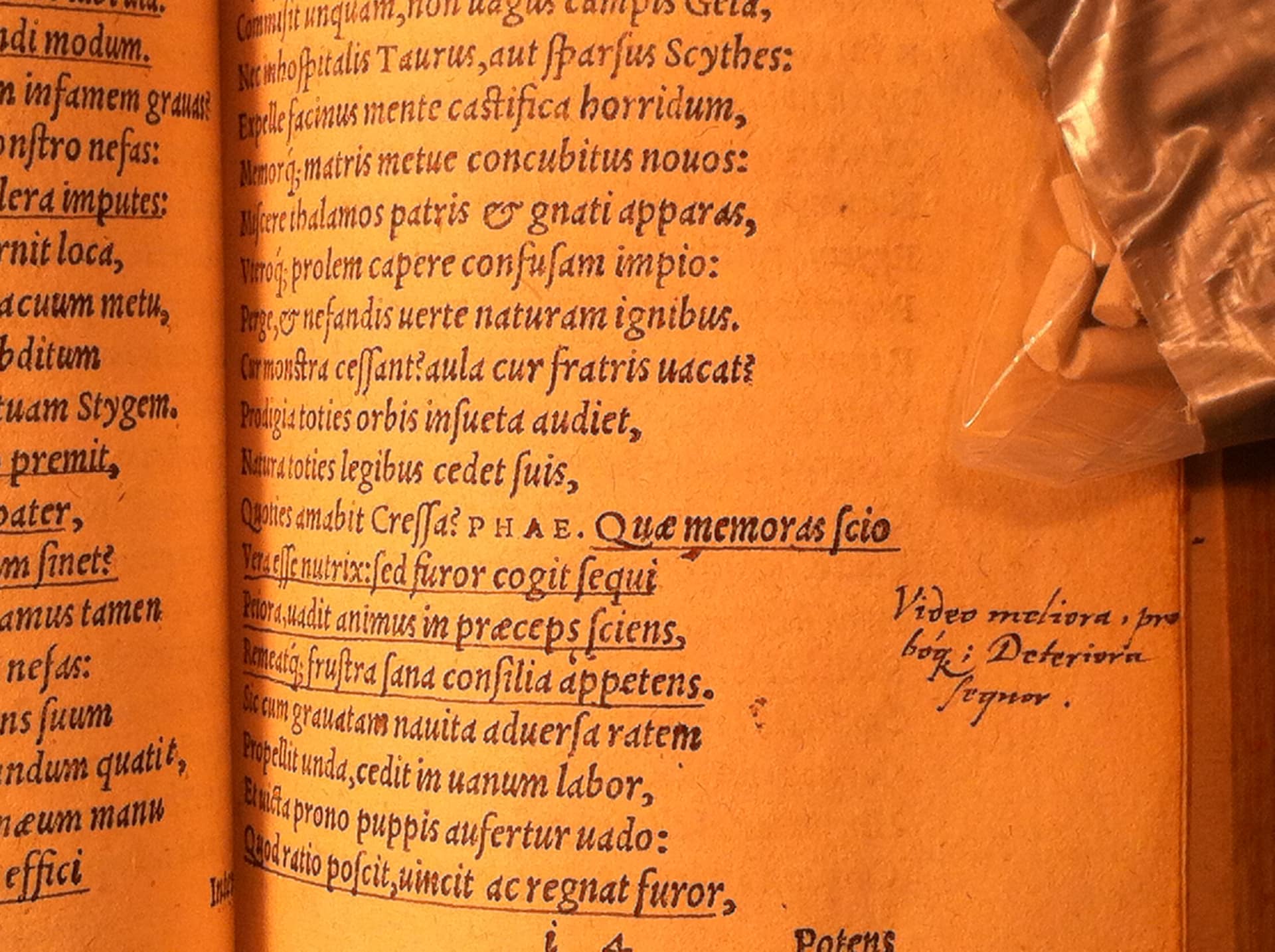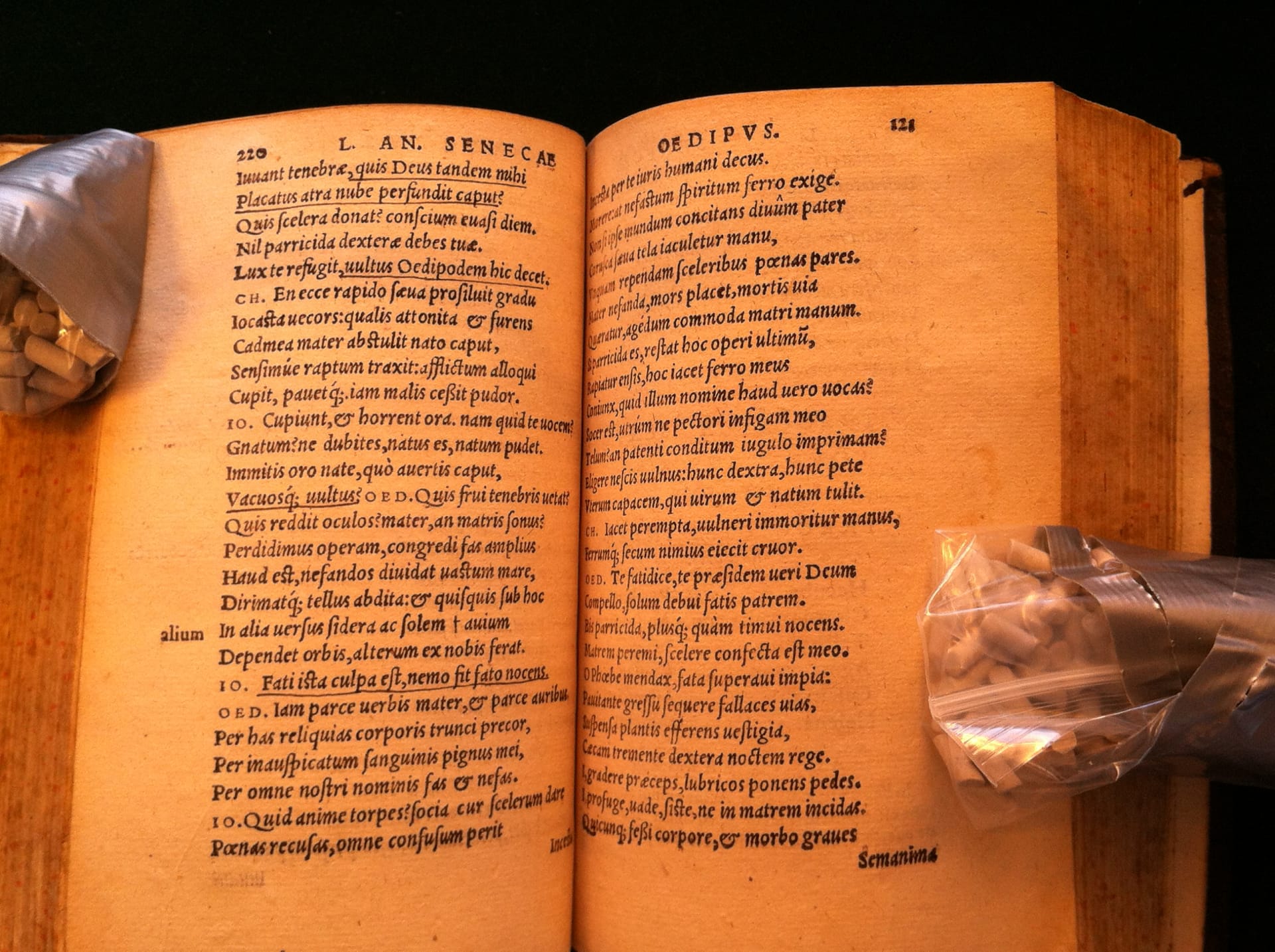 Provenance and Current Location: Provenance unknown. Purchased by an American collector in around 2015 and now in the Senate House Library’s Shakespeare Authorship Collection. The book is the 1563 edition of Seneca’s Ten Tragedies printed at Basil.